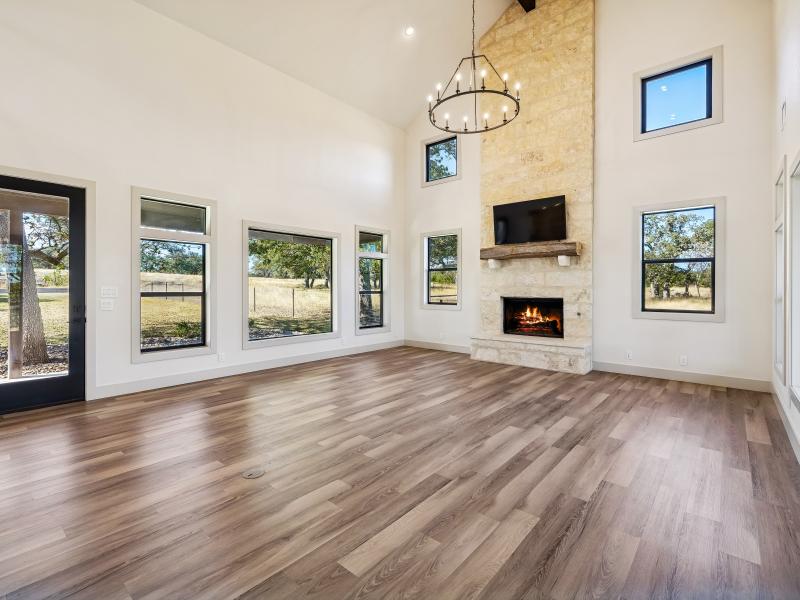 The property’s natural habitat draws native Hill Country wildlife, including deer, songbirds, and the community’s free-roaming sheep. The blend of open areas and tree cover creates excellent opportunities for daily wildlife viewing from porches and patios.