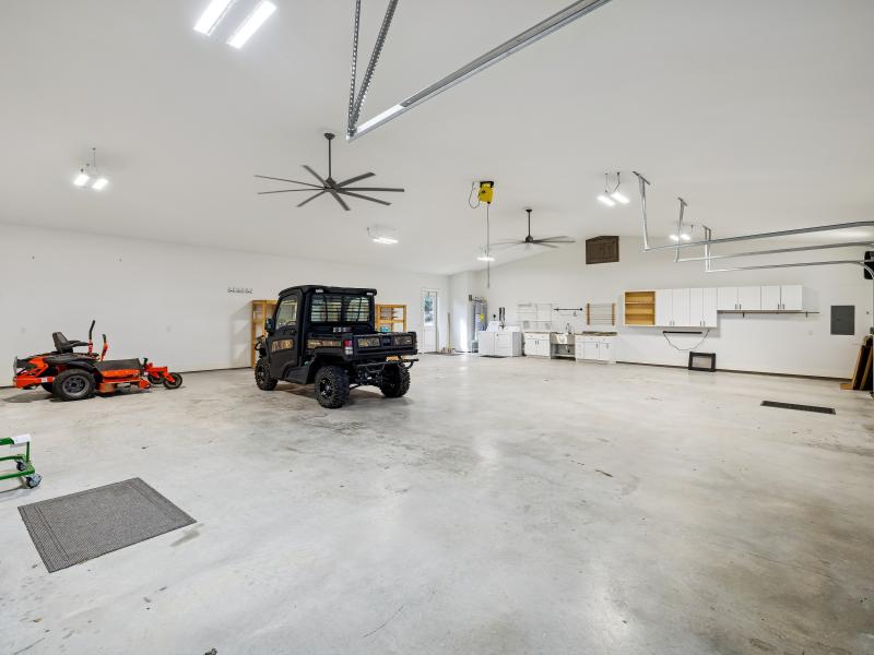 Additional structures include an oversized 3+-car garage with custom alder cabinetry and conditioned loft above—ideal for an office, studio, or workout space—and a barndominium capable of housing up to six vehicles or operating as a workshop. An attached ~12' x 40' guest suite provides a private bedroom, bath, living area, and kitchenette overlooking a grove of mature trees.