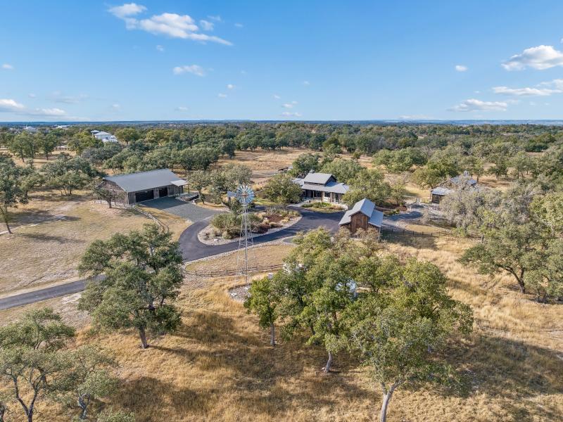 10.01 ac Hidden Springs Reserve offers a rare combination of luxury, privacy, and versatility—featuring a beautifully finished main home, full guest house, expansive workshop and barndominium, multiple guest accommodations, and exceptional outdoor living spaces. Its prime location within a premier Agrihood community and just minutes from Fredericksburg makes it an outstanding retreat for full-time living, hosting, or multi-generational use.