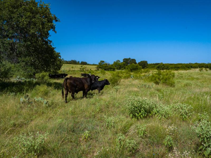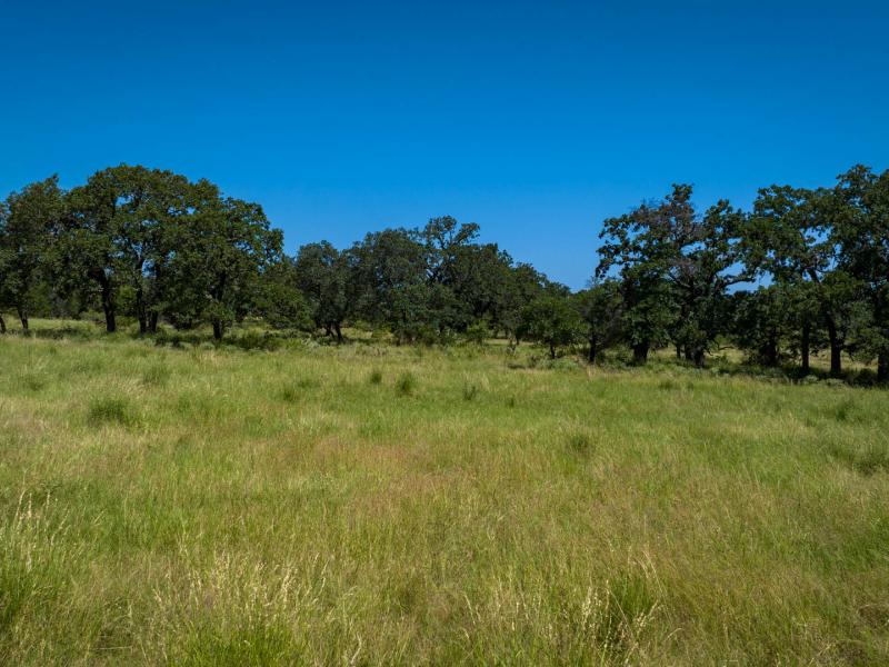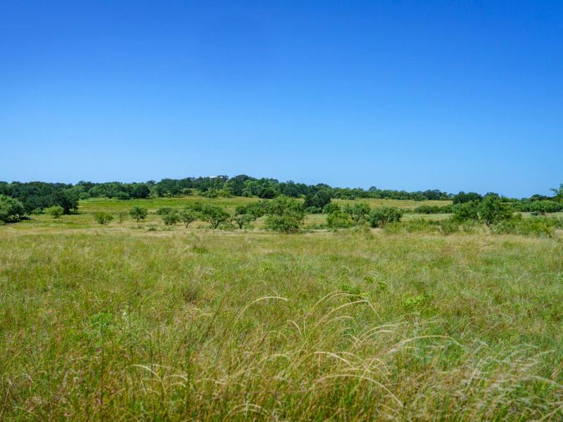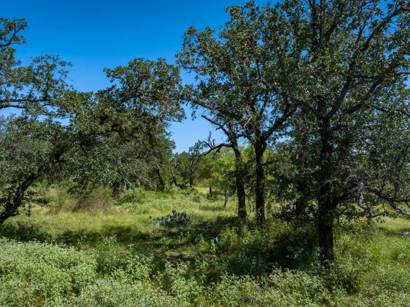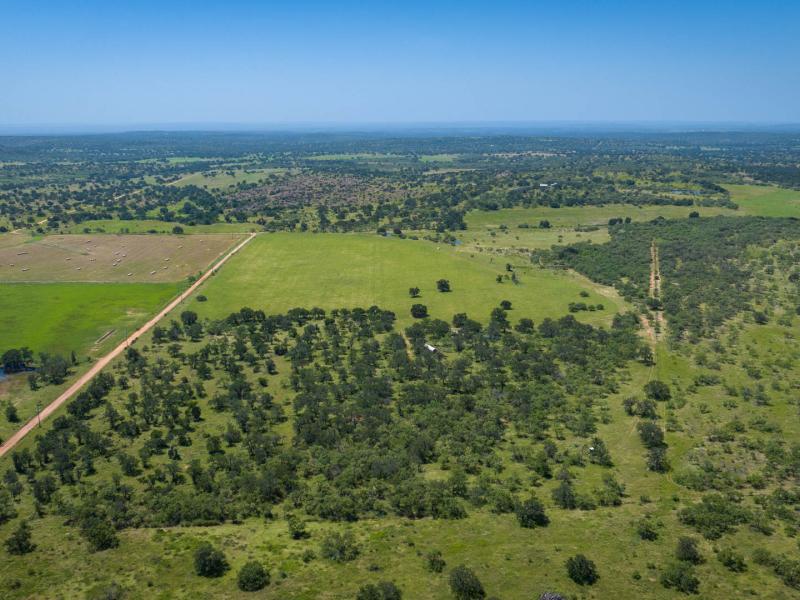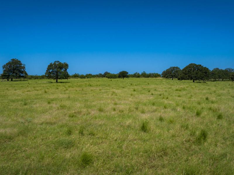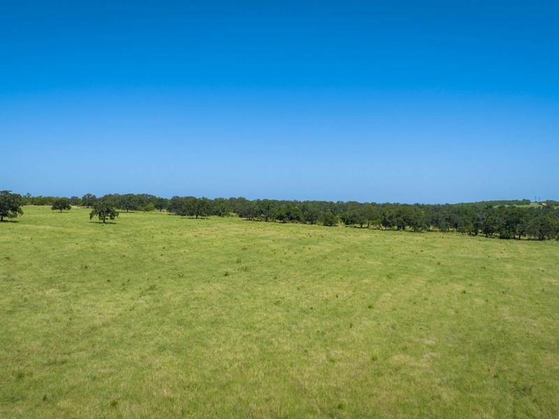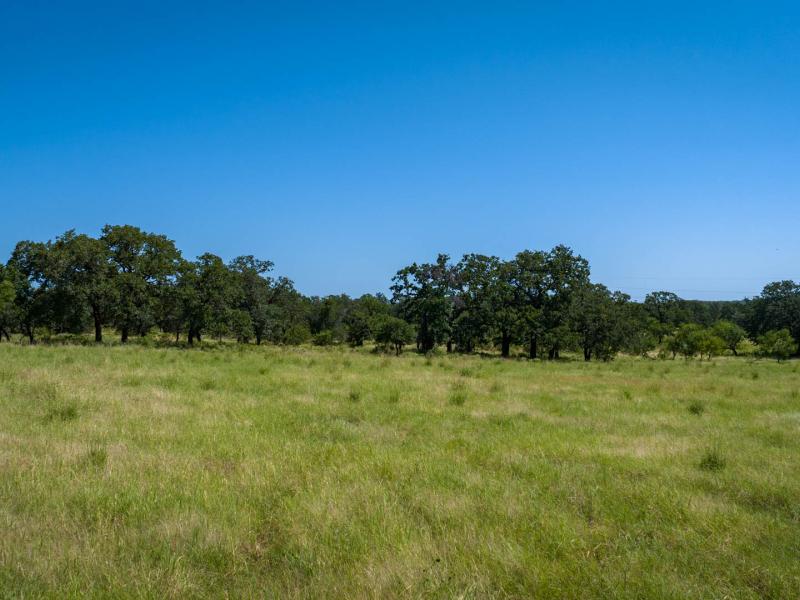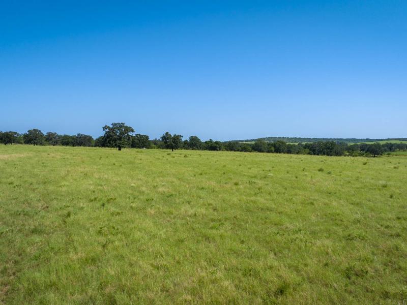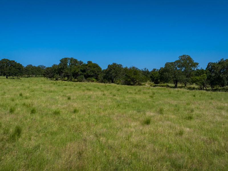 The land showcases gently rolling terrain typical of the Hill Country, with a well-managed mix of improved coastal grasses and mature hardwoods. This balance supports both grazing potential and wildlife habitat while offering attractive views and shaded areas throughout the ranch.