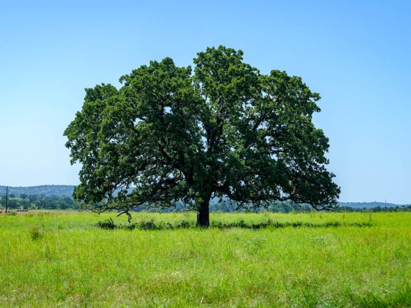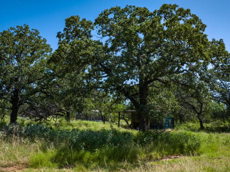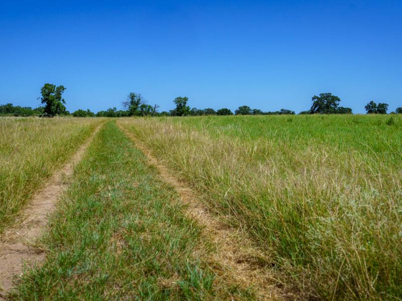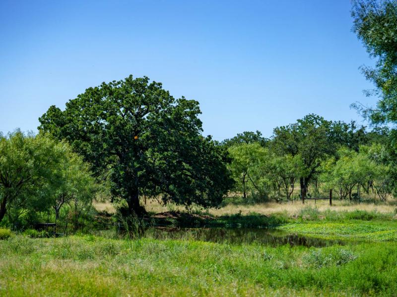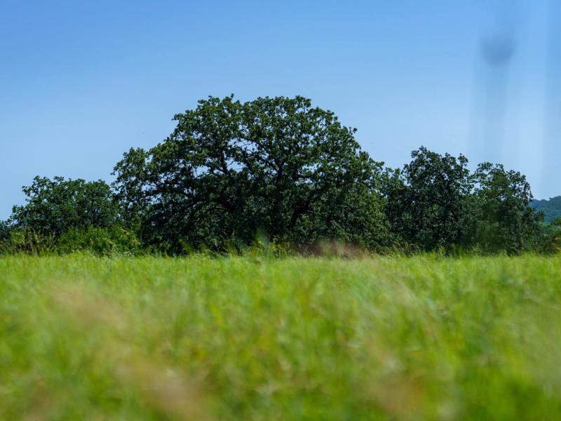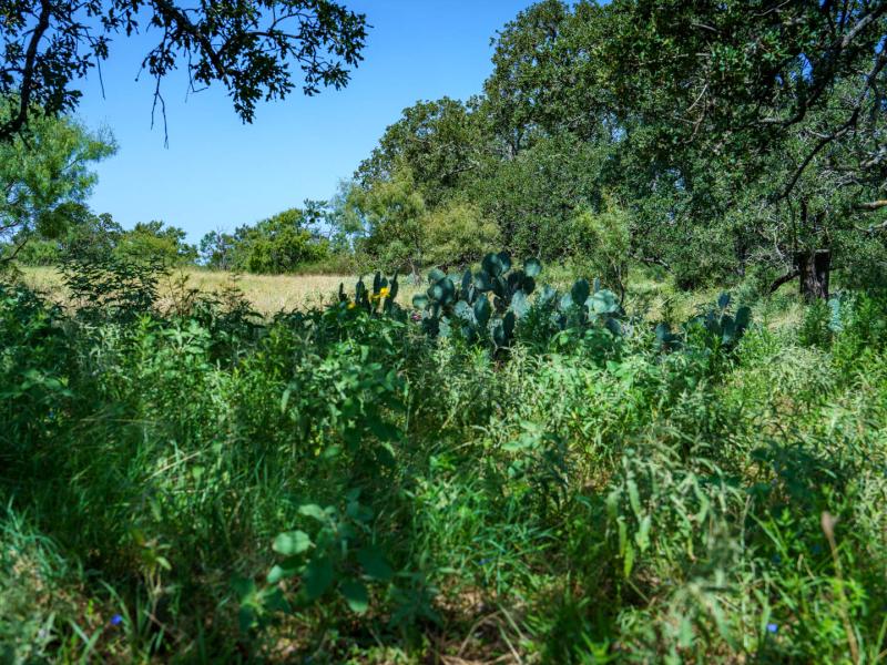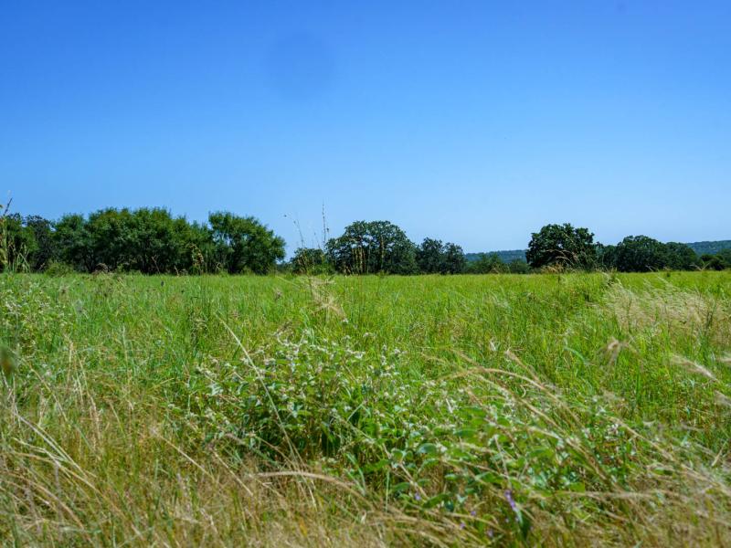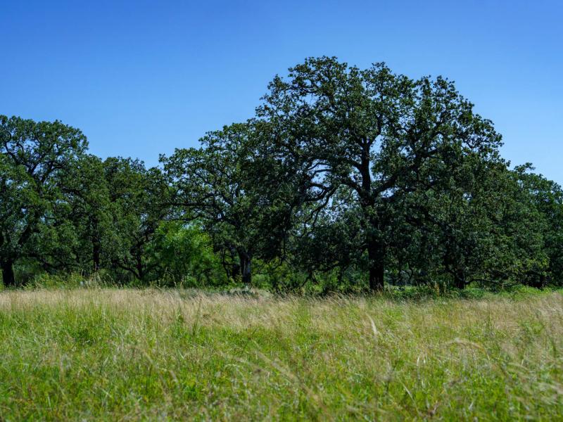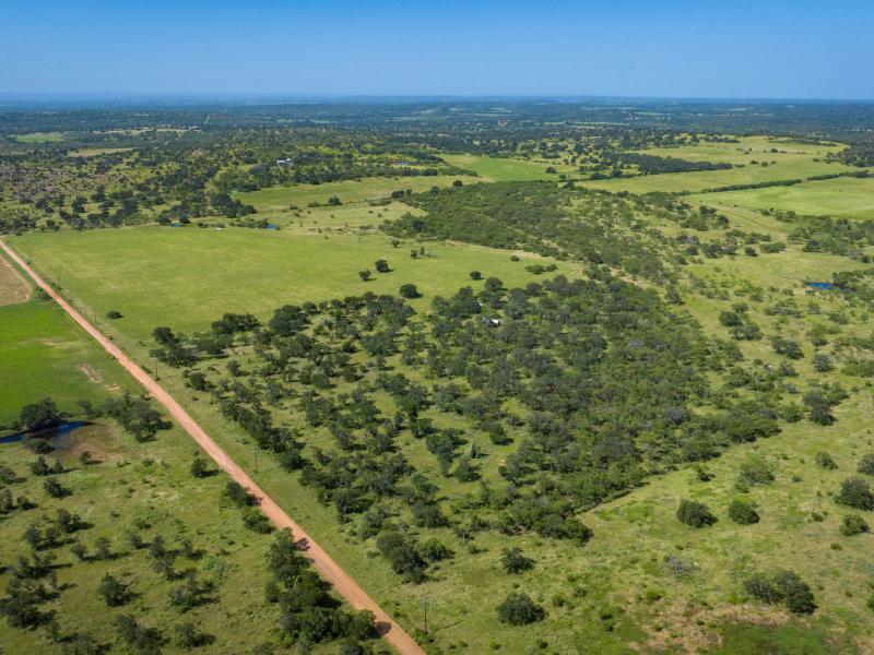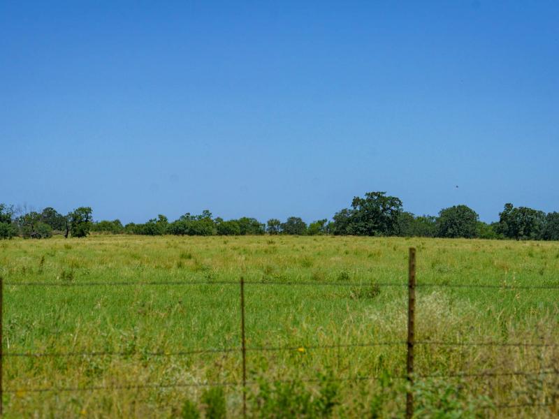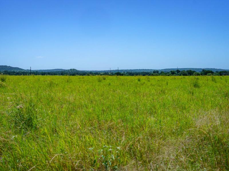 The land showcases gently rolling terrain typical of the Hill Country, with a well-managed mix of improved coastal grasses and mature hardwoods. This balance supports both grazing potential and wildlife habitat while offering attractive views and shaded areas throughout the ranch.