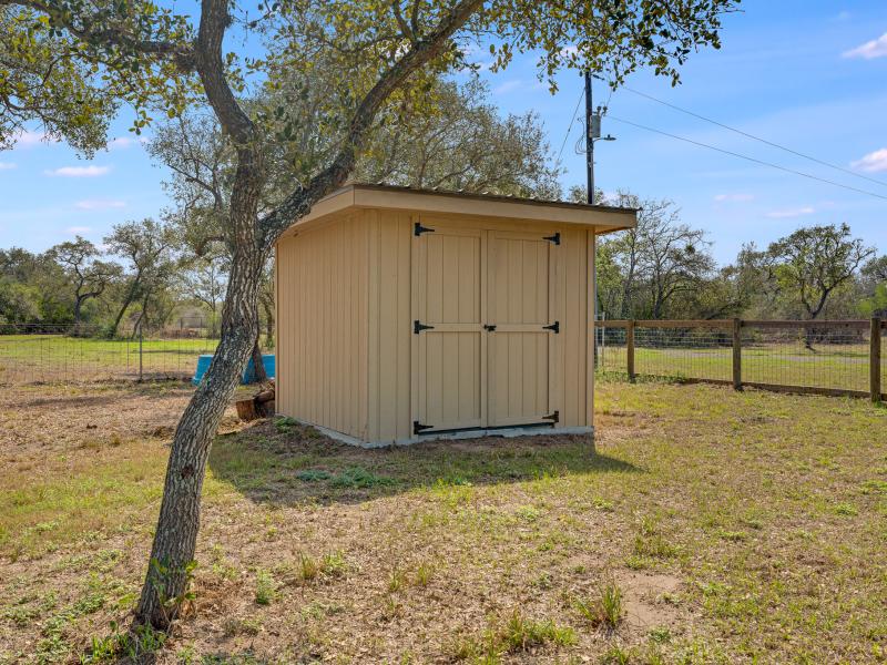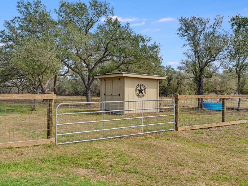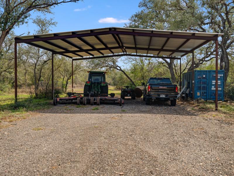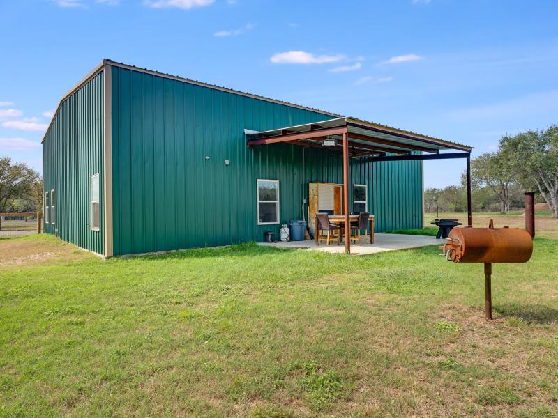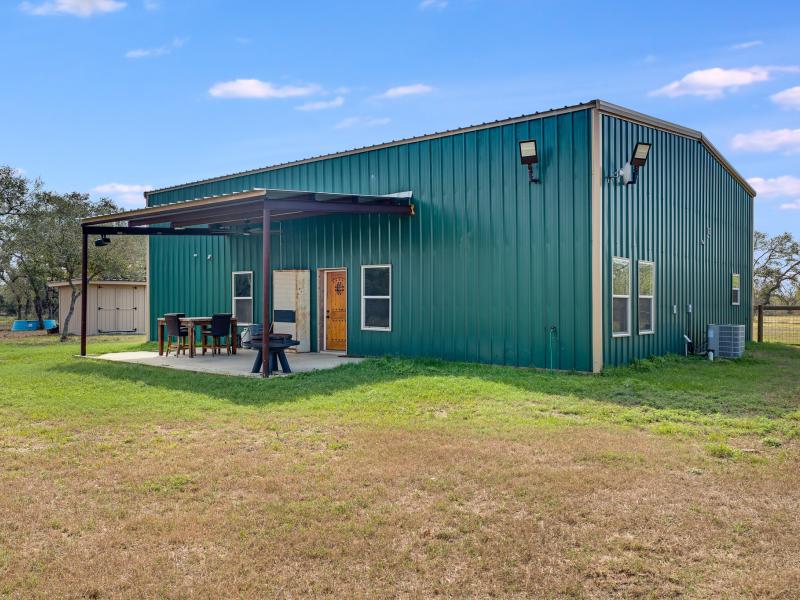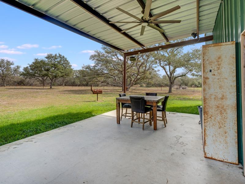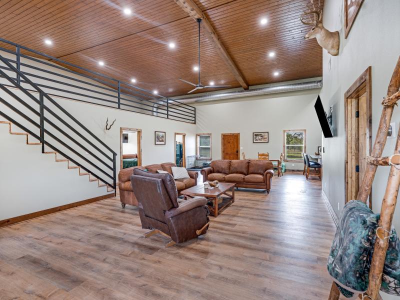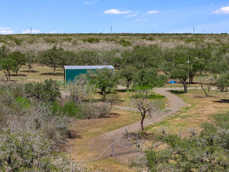 All improvements on the ranch were completed in 2023, making this a true turnkey offering. The property features a fully furnished 3-bedroom, 2-bathroom barndominium with approximately 2,560± square feet of air-conditioned living space. The barndo includes a loft area that can be utilized as a game room or additional bunk space, offering flexibility for entertaining or accommodating guests. Additional improvements include a 40x40 equipment shed, a new electric gated entrance, and a well-constructed caliche drive for easy access throughout the property. A covered back porch overlooks the landscape, and a fenced yard with a dog run surrounds the home, allowing for convenience and functionality for owners with dogs.