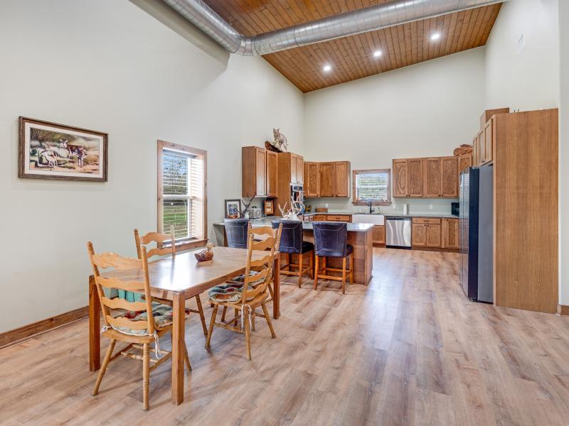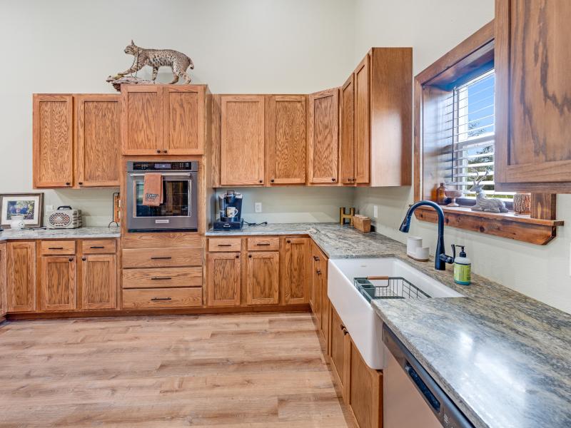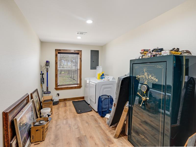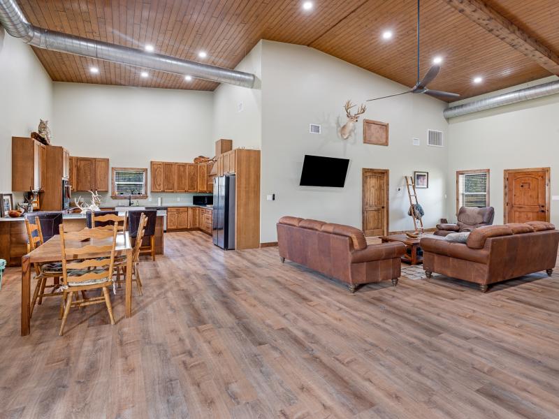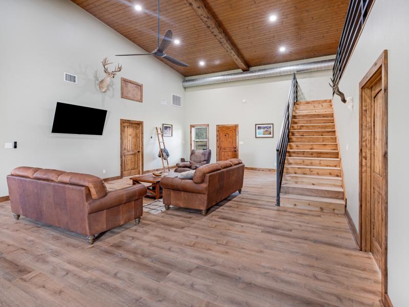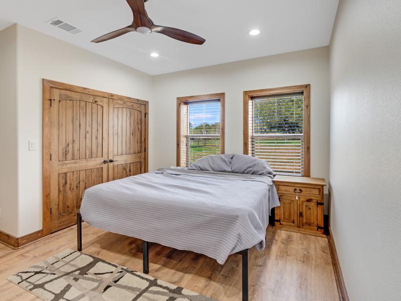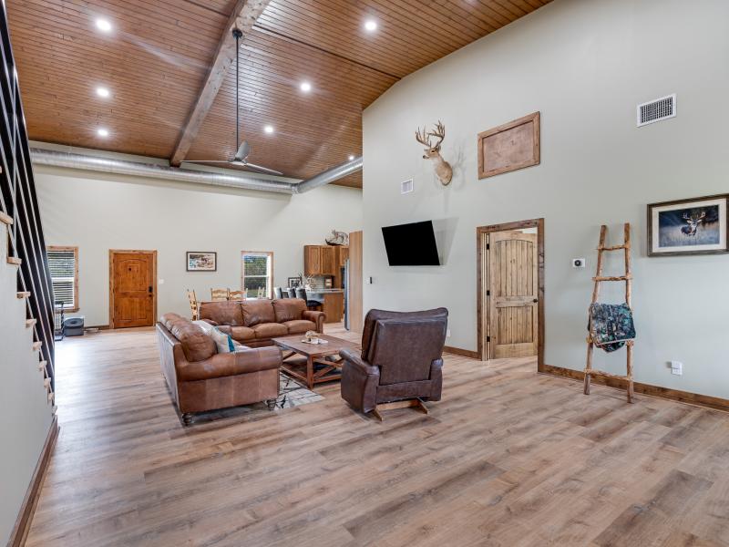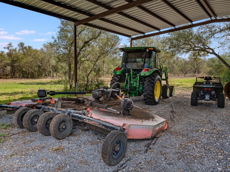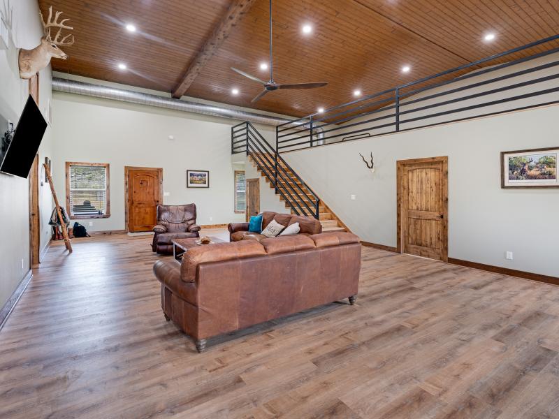 All improvements on the ranch were completed in 2023, making this a true turnkey offering. The property features a fully furnished 3-bedroom, 2-bathroom barndominium with approximately 2,560± square feet of air-conditioned living space. The barndo includes a loft area that can be utilized as a game room or additional bunk space, offering flexibility for entertaining or accommodating guests. Additional improvements include a 40x40 equipment shed, a new electric gated entrance, and a well-constructed caliche drive for easy access throughout the property. A covered back porch overlooks the landscape, and a fenced yard with a dog run surrounds the home, allowing for convenience and functionality for owners with dogs.
