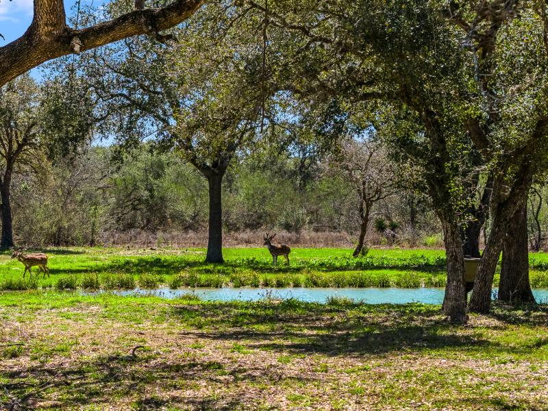 Machicek Oaks Ranch supports an impressive population of native and exotic wildlife, including Whitetail deer, Rio Grande turkey, quail, dove, axis, blackbuck, and seasonal waterfowl. The combination of dense cover, managed habitat, and reliable water sources creates excellent year-round hunting and recreational opportunities across the property.