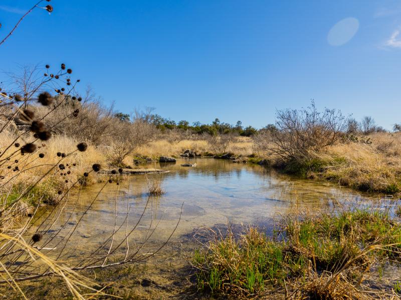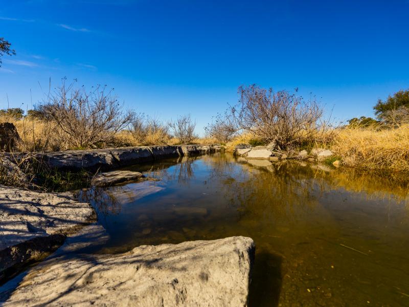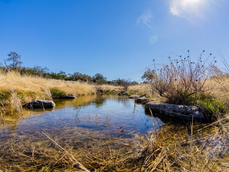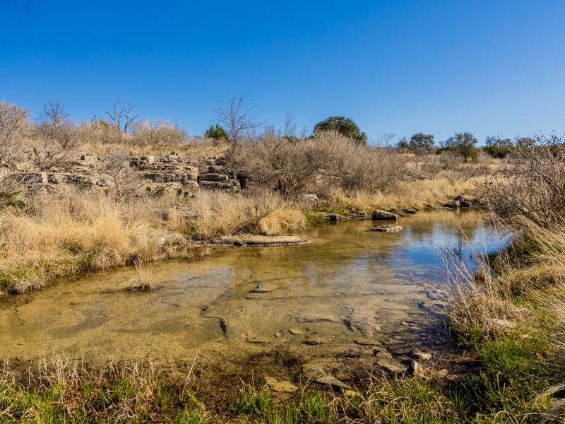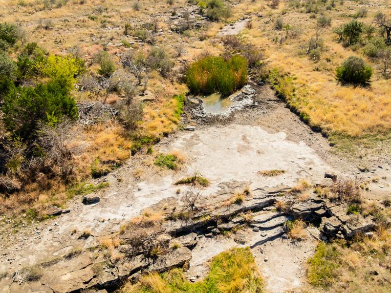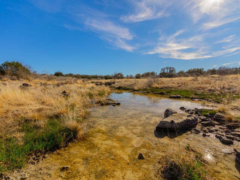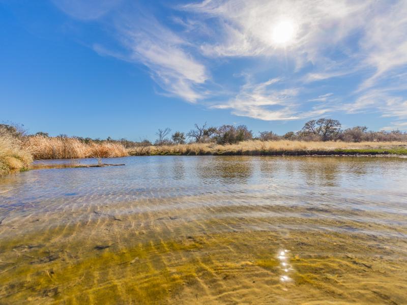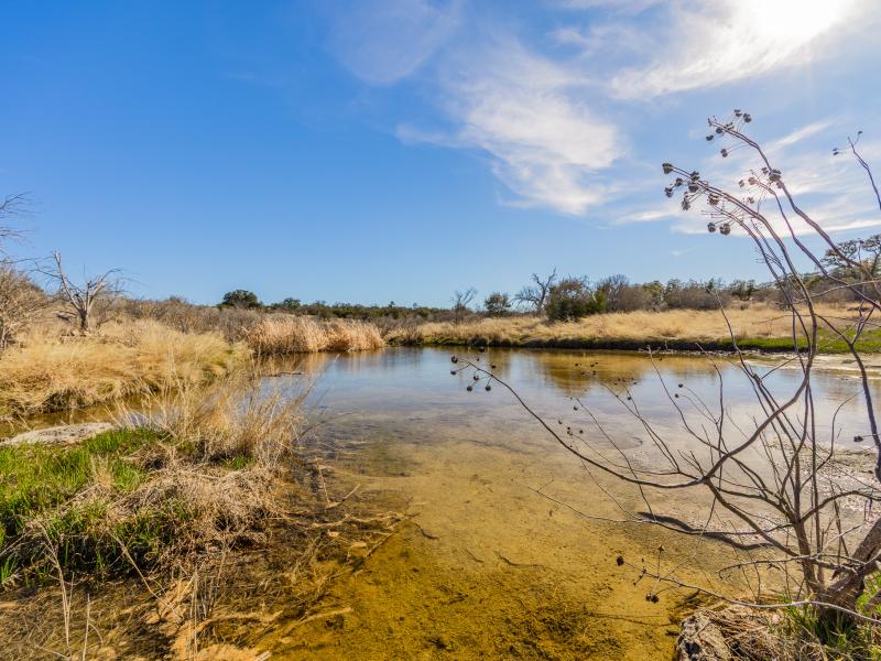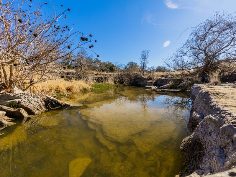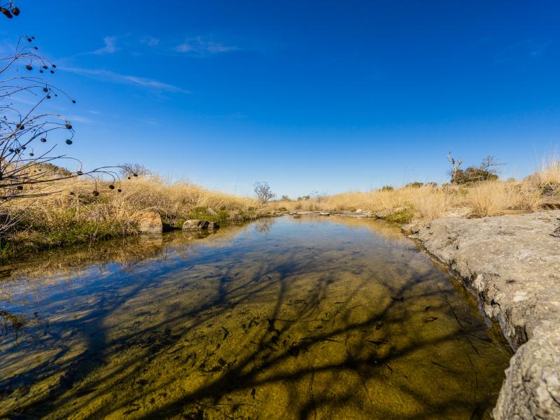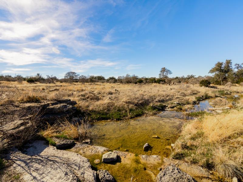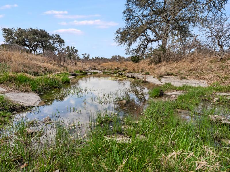 A picturesque creek meanders through the ranch, cutting across the property and forming the ecological backbone of the landscape. Limestone banks, shaded bends, and pockets of spring-fed water create scenic grottos and year-round wildlife attraction points.