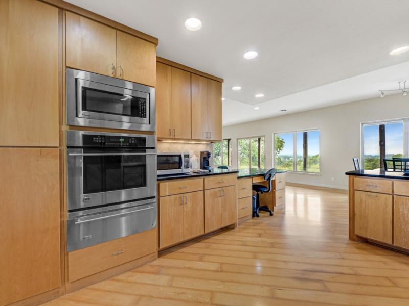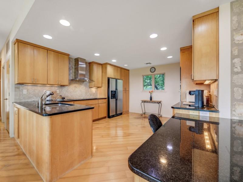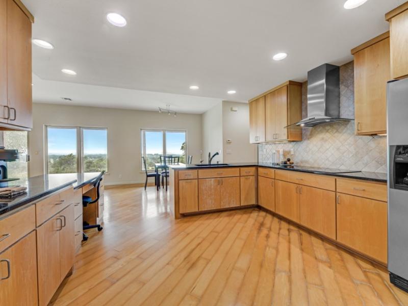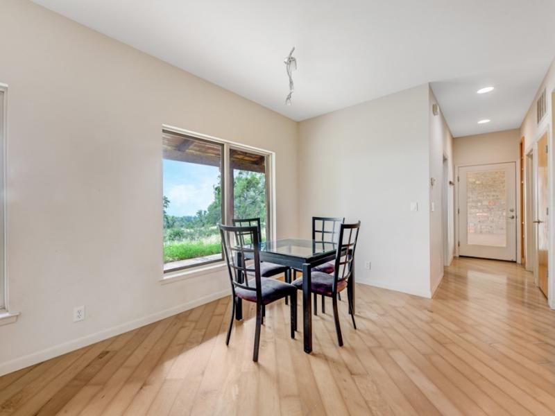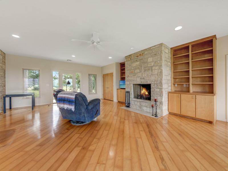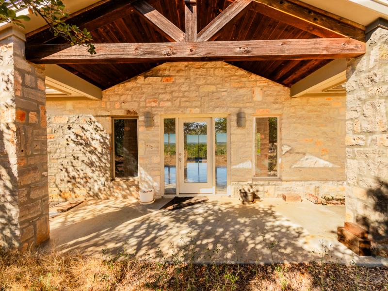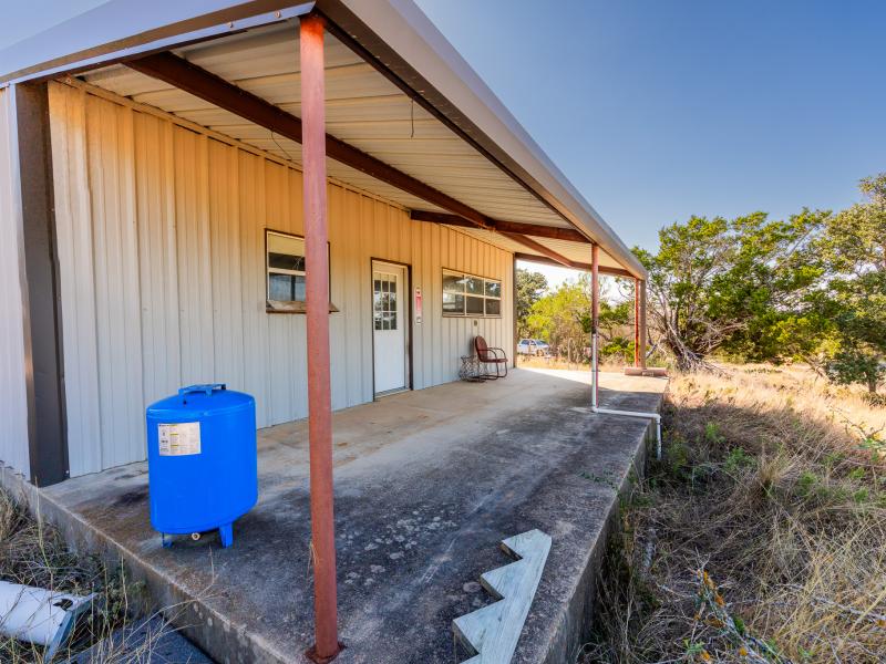 The primary residence is a comfortable two-bedroom, two-and-a-half-bath Hill Country home positioned to capture long-distance views and natural light across the rolling landscape.