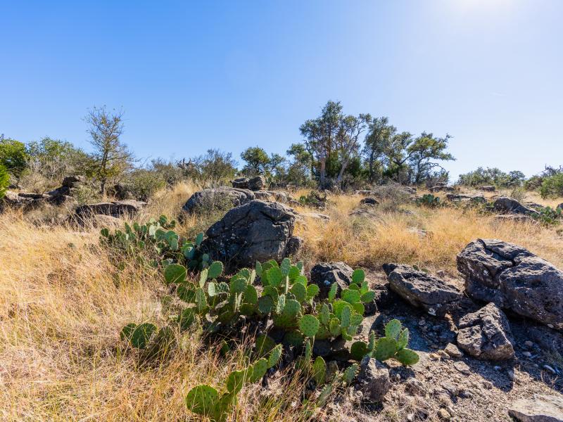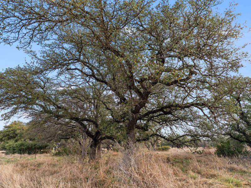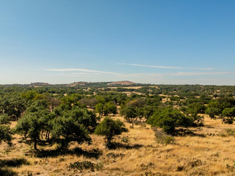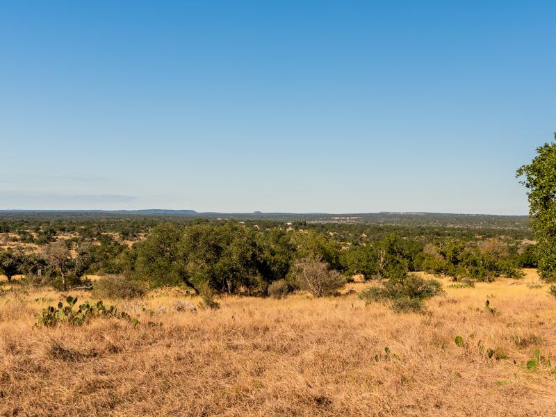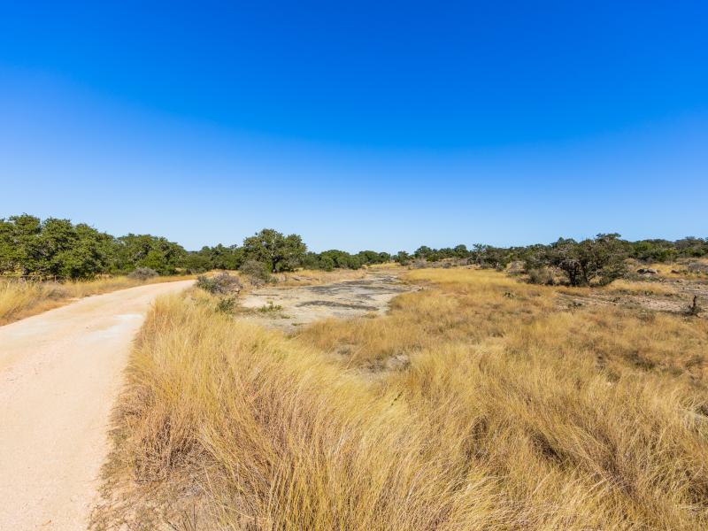 The ranch showcases classic Hill Country terrain, characterized by gently rolling hills, mature live oaks, and expansive native grass pastures. Elevation ranges from approximately 1,620 feet at the homesite down to around 1,500 feet along the creek corridor, providing over 120 feet of elevation change and long panoramic views across the surrounding countryside.