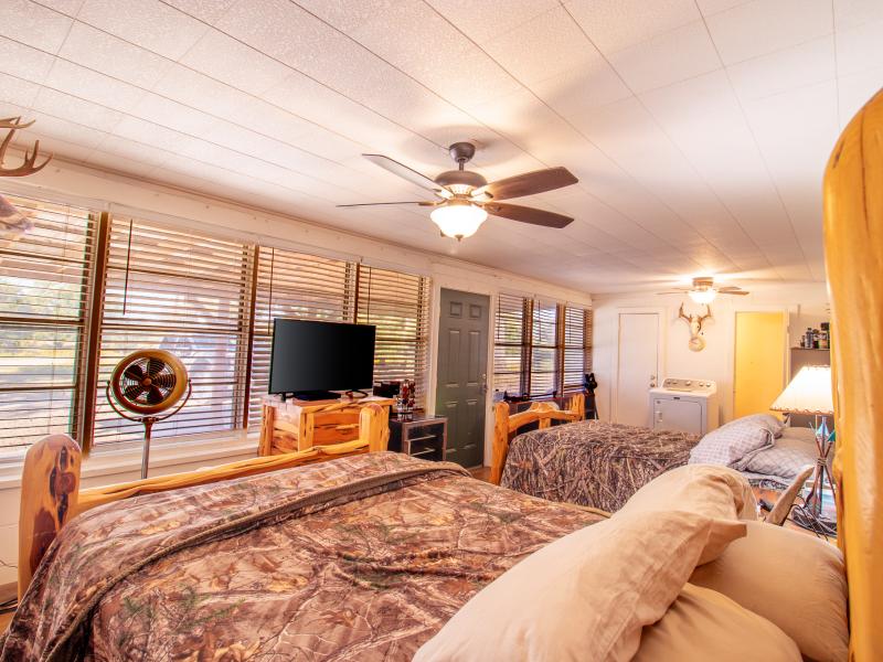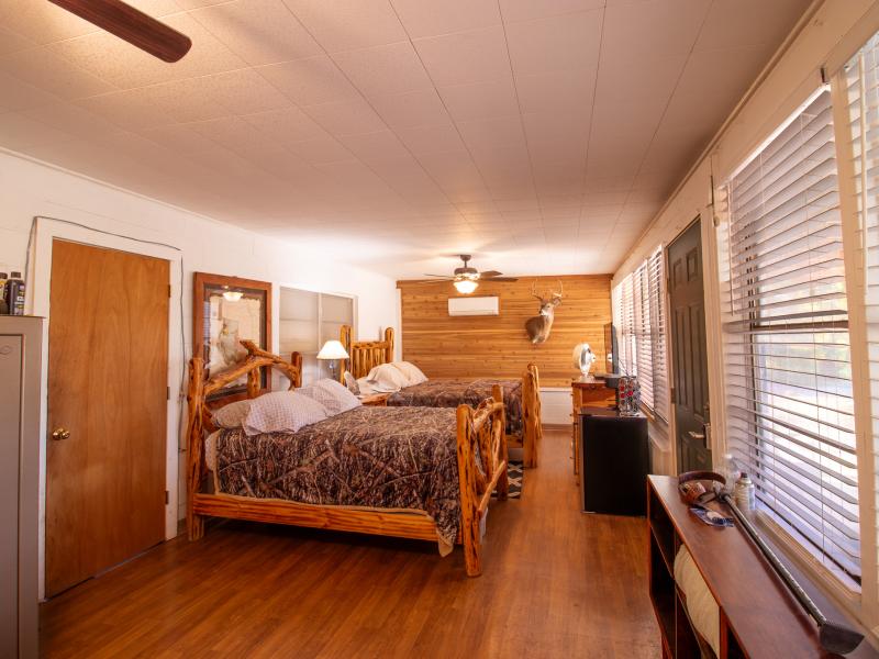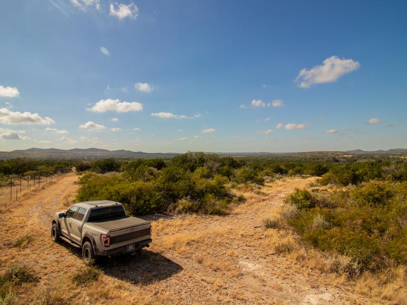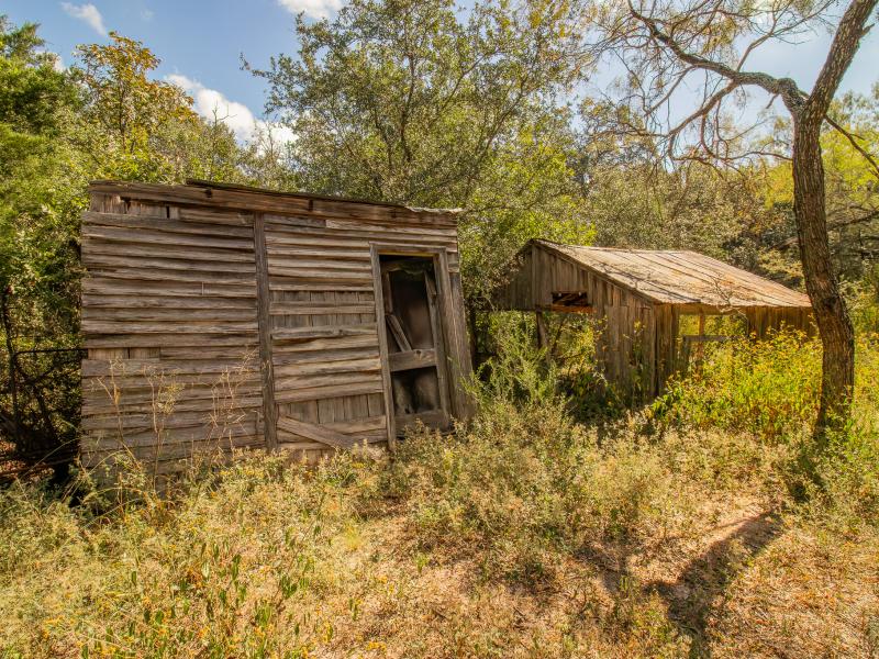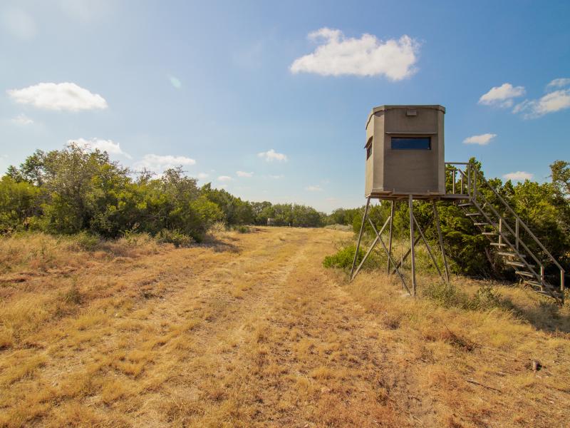 The remodeled ranch home totals approximately 960 square feet and includes 1 bedroom, 1.5 baths, a kitchen, and living area, offering a comfortable basecamp for weekends or extended stays. Additional improvements include a covered shed with a built-in walk-in cooler, a generator, and an enclosed section of the shed for secure storage of UTVs, skid steers, and other ranch equipment. For those seeking a balance of comfort and authenticity, the property offers both functional infrastructure and the preserved character of a working family ranch that has stood the test of time. The ranch is turnkey and ready to hunt, featuring onsite electric, established ranch roads, blinds, feeders, and cut senderos throughout the property. These improvements provide easy access across the land and support excellent whitetail and bird hunting opportunities. The mix of terrain—from thick cedar ridges to open river flats—encourages strong game diversity and movement. For those seeking a balance of comfort and authenticity, the ranch offers both functional infrastructure and the preserved character of a working family ranch that has stood the test of time.