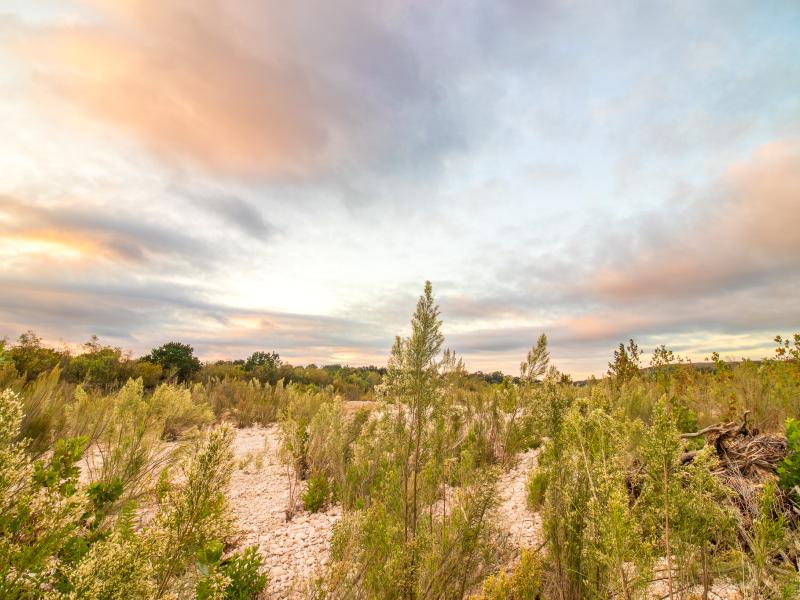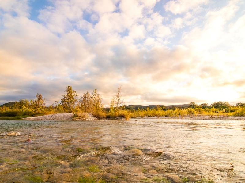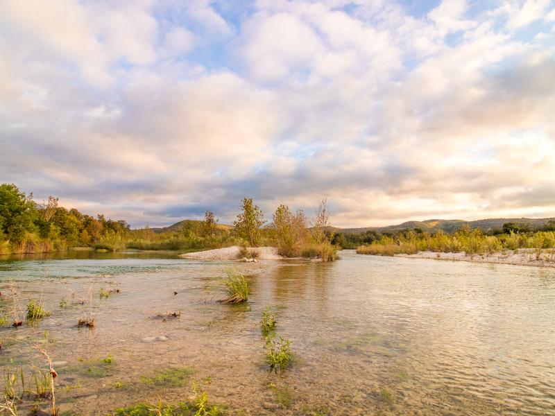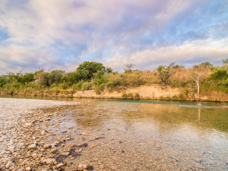 The landscape of Historic Nueces River Ranch perfectly captures the transition between Hill Country and South Texas brushland. Rolling hills, scenic elevation changes, and a strong mix of Pecans, live Oaks, and native brush provide excellent habitat for wildlife and striking panoramic views. Nearly 1,500 linear feet of Nueces River frontage anchor the ranch—ideal for fishing, kayaking, or simply relaxing by the water’s edge beneath towering cypress trees. The blend of heavy cover and open pastureland creates a balanced environment for both wildlife management and recreation, with areas well-suited for future home construction overlooking the river valley.