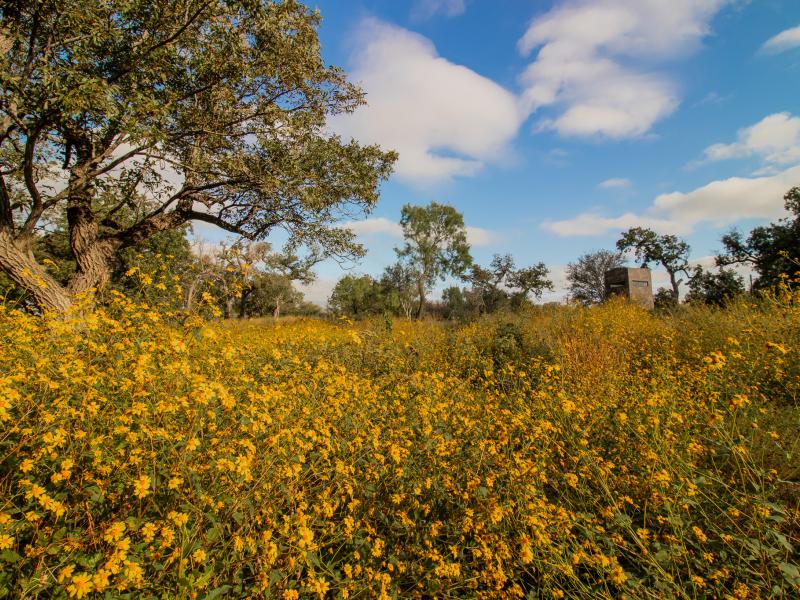 The ranch supports a thriving population of native and free-ranging exotic wildlife, offering premier hunting and viewing opportunities. Game species include whitetail deer, axis deer, turkey, dove, and blackbuck, all drawn to the ranch’s strong natural cover, reliable water, and established feeding infrastructure. The variety of terrain—from dense cedar ridges to open grass flats along the river—creates the ideal balance of shelter and forage, ensuring consistent game movement throughout the seasons. Whether for trophy hunts, bird shoots, or simply enjoying the wildlife from the porch, the property delivers the true South Texas outdoor experience.