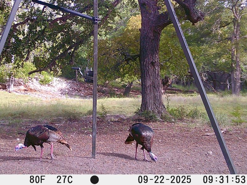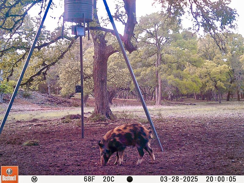 Whitetail deer naturally transition between open pasture and heavy cover, while turkey, dove, and hogs utilize the wooded valleys and seasonal drainages. The balance of visibility and security makes wildlife encounters dynamic and frequent—whether glassing from a hilltop, driving the internal roads at dusk, or watching game move naturally beneath the oaks.