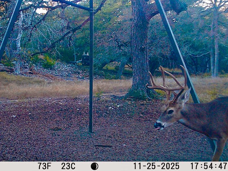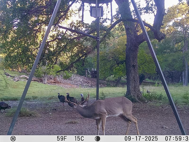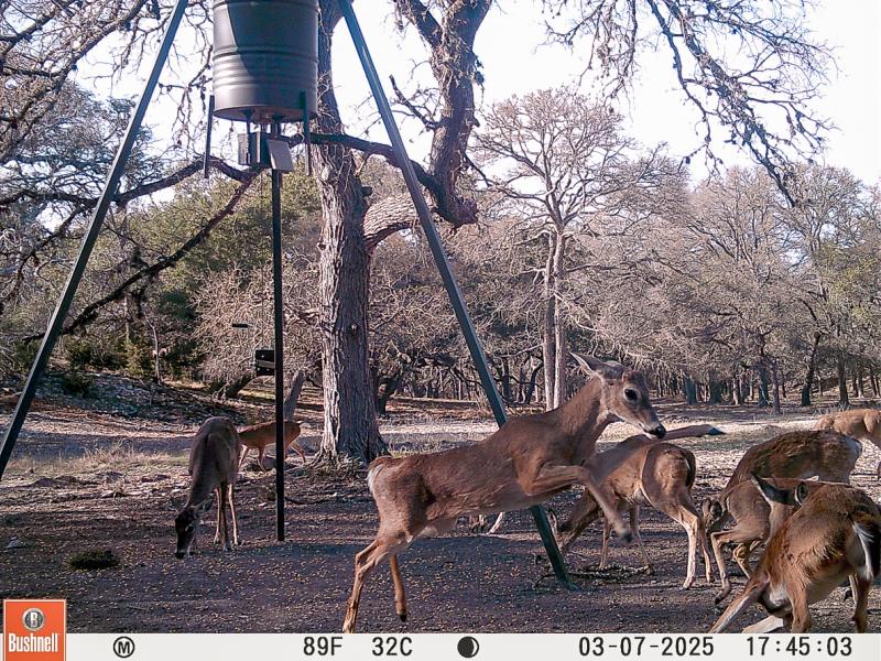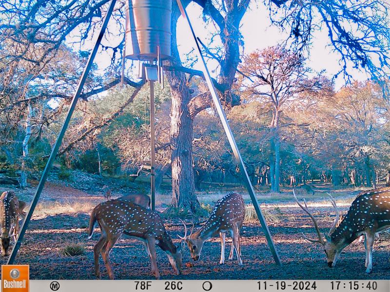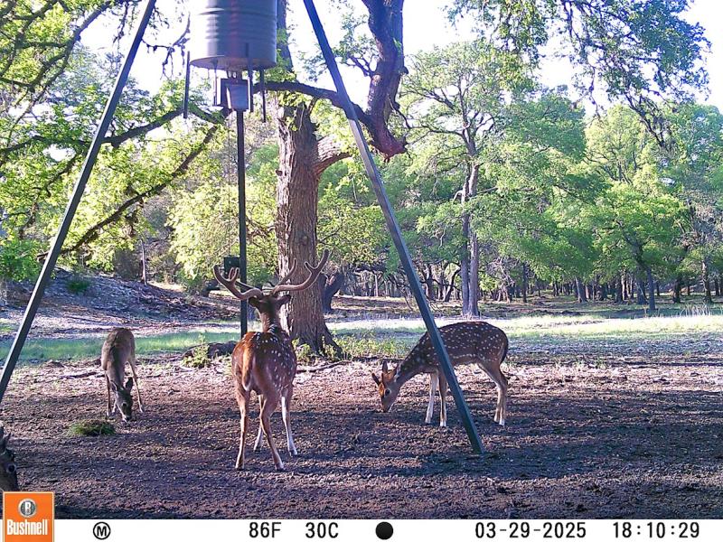 Rolling Boerne Ranch offers exceptional wildlife habitat, combining open grazing areas, shaded hardwood bottoms, dense thickets, and elevated travel corridors. Multiple herds of axis deer are regularly observed grazing in the improved pasture and valley floors, then moving swiftly through the elm-lined bottoms and oak motts—busting through brush and slipping into cover along the draws.