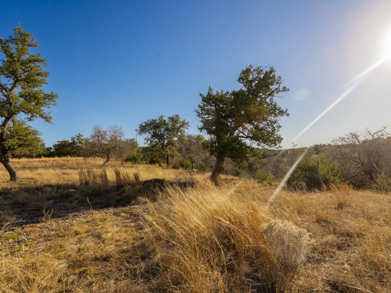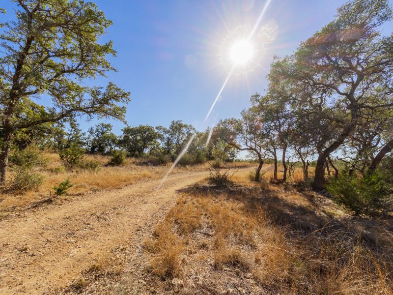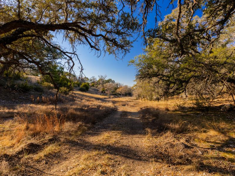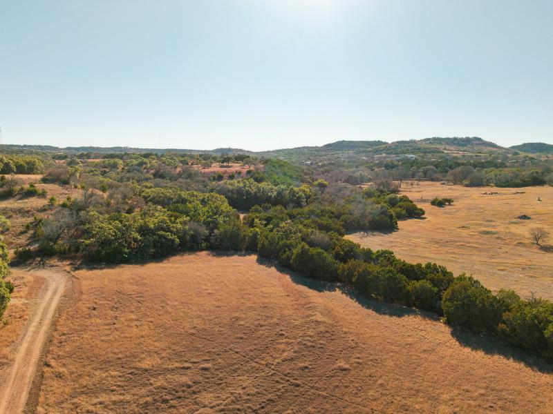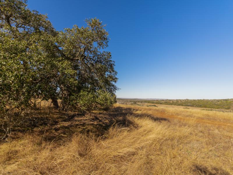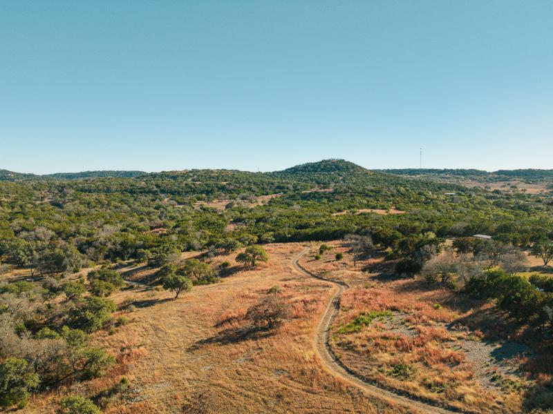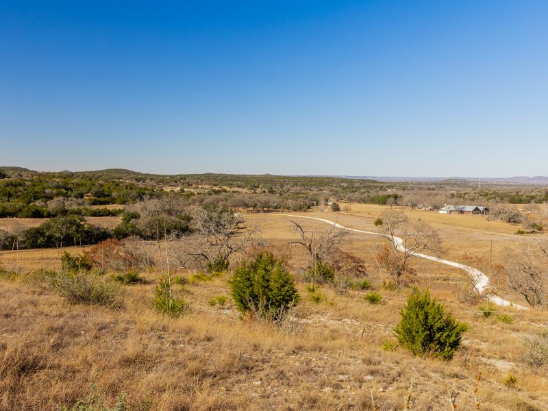 Rising from the valley are multiple elevated ridges and broad mesas, offering commanding, long-range views across the Texas Hill Country—many with near 360-degree sightlines. Rolling topography, deep soils, and waist-high native grasses provide both scenic appeal and practical usability. A thoughtfully maintained internal road system allows easy access throughout the ranch, making it equally enjoyable on foot, by vehicle, or from elevated vantage points.