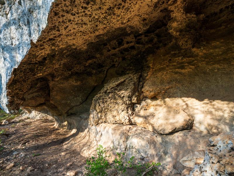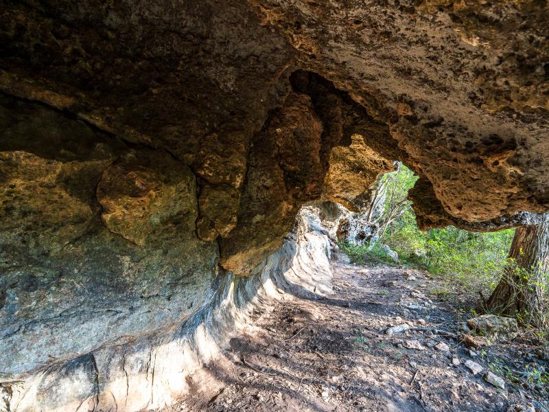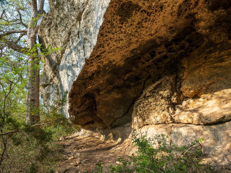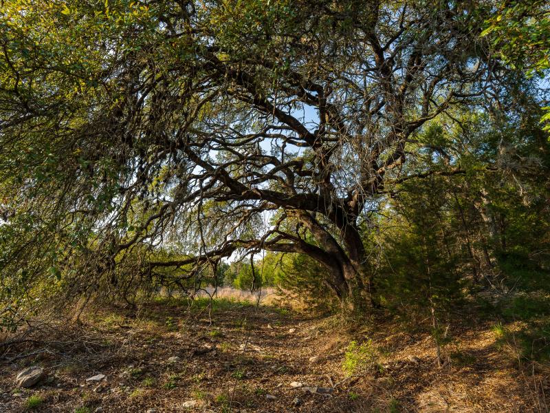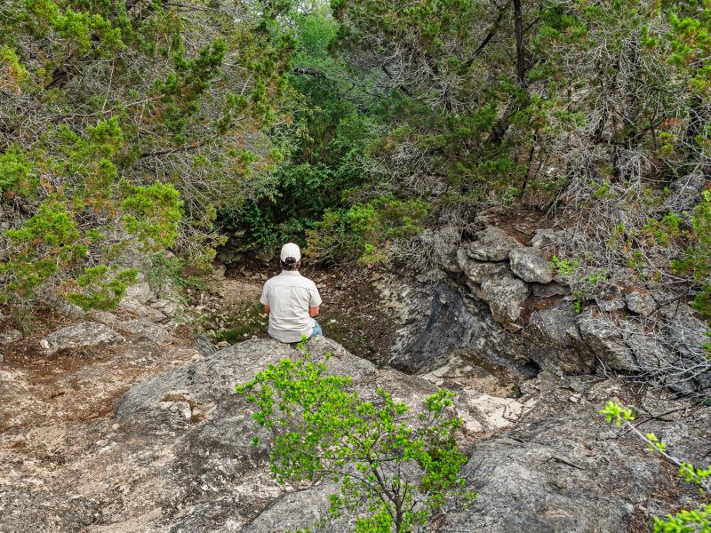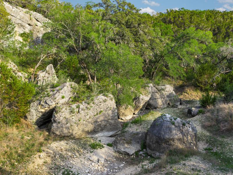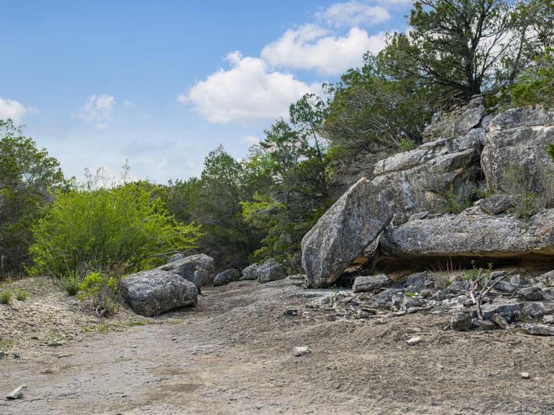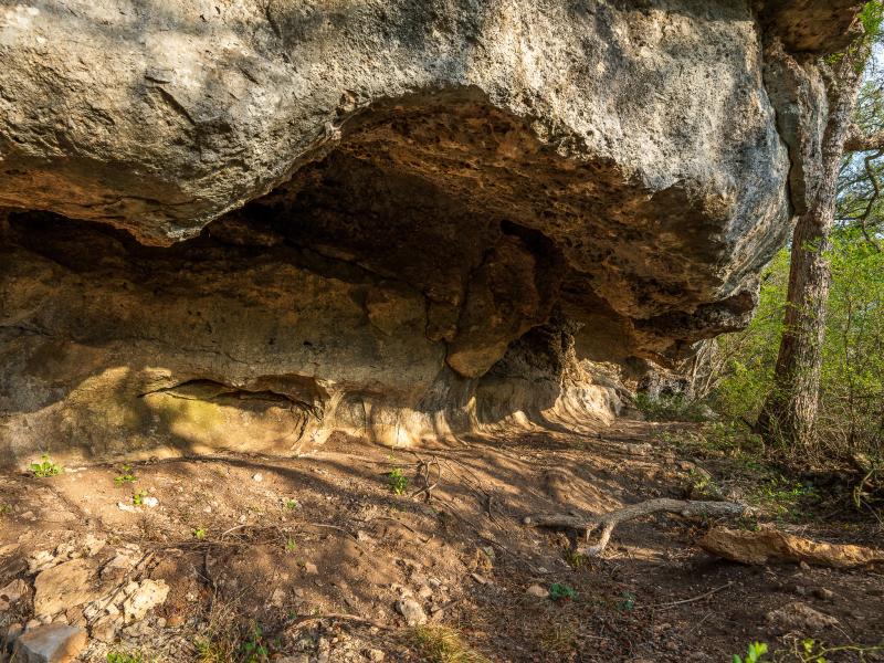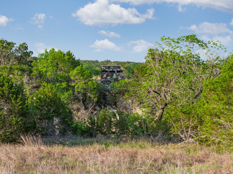 A standout feature along the creek is a 10–13 foot deep grotto, historically spring-fed, which presents an opportunity for enhancement into a unique swimming hole. The surrounding bluffs, caves, and shaded banks create a setting that feels distinctly timeless and deeply connected to the Hill Country landscape.