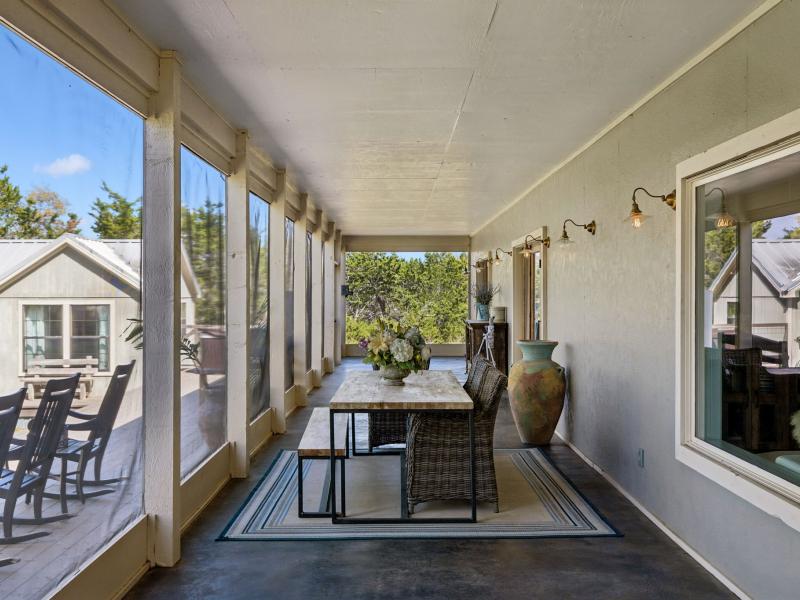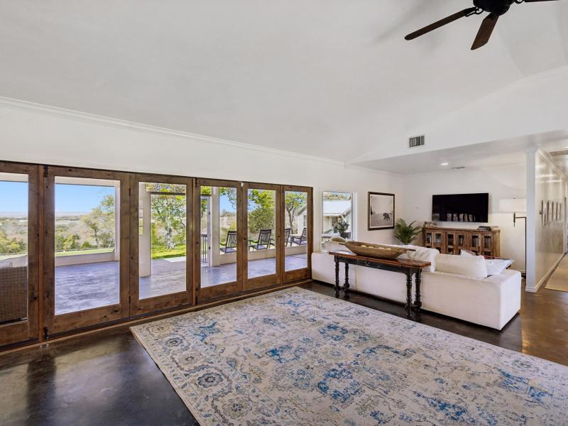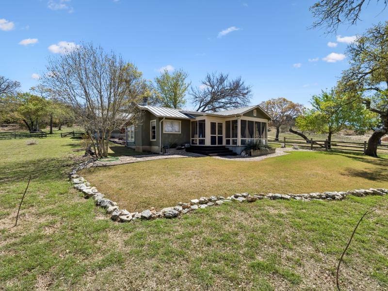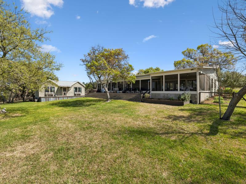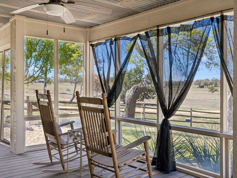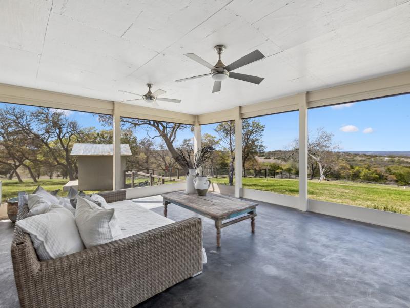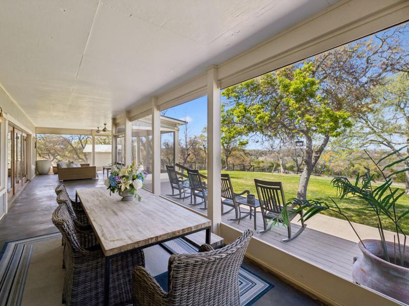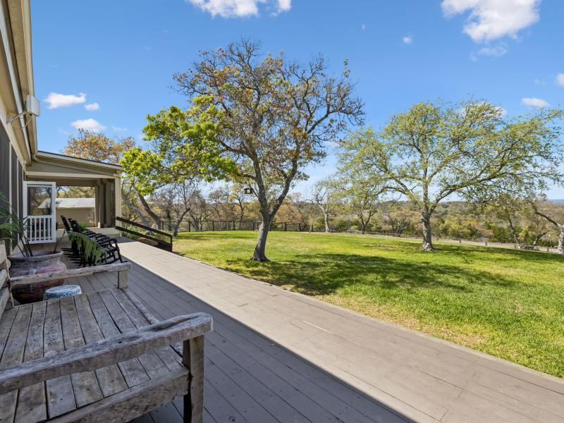 Perched atop one of the area’s more scenic elevations, the main home enjoys expansive hilltop views from the massive back porch that stretches for miles, creating a sense of openness and tranquility. The land showcases a classic Hill Country blend of native pasture, gently rolling terrain, and mature hardwoods. In addition to the primary residence, a separate, well-maintained guest home with a heritage-inspired, Hill Country chic feel offers flexibility for extended stays, guests, or income-producing use. The positioning of both homes allows for privacy while maintaining a cohesive and functional layout. With no known restrictions, the property is well-suited for short-term rental opportunities.
