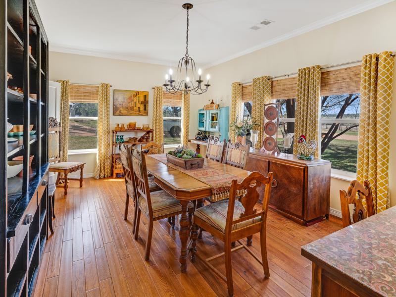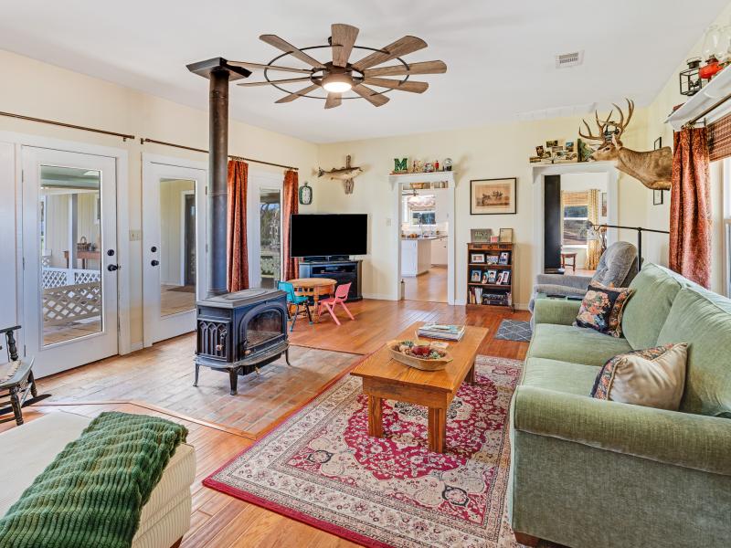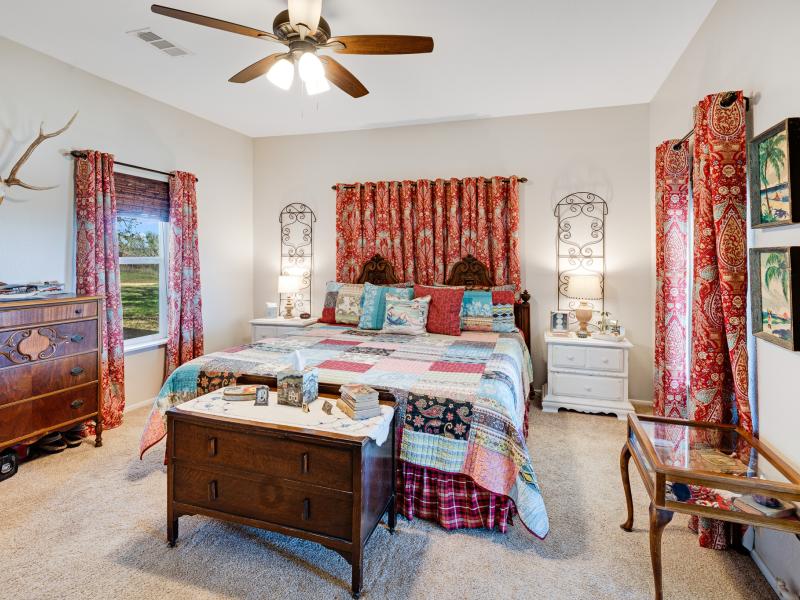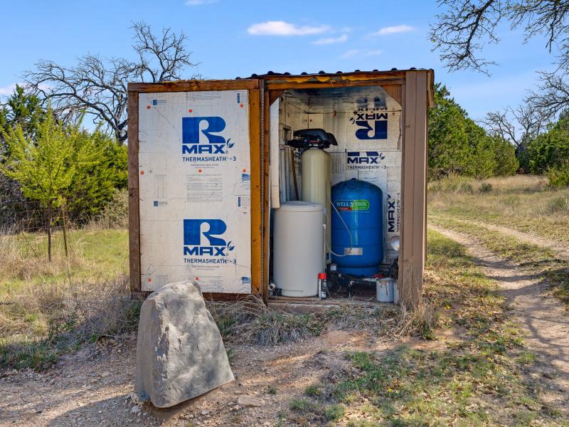 Water is a standout feature of Mayfield Ranch. The property is supported by three water wells, including one producing over 50 gallons per minute. A stocked pond, supplemented by well water, provides year-round fishing for bass and catfish while also enhancing the ranch’s recreational appeal and supporting wildlife. Both residences are equipped with full water filtration systems and water softeners, ensuring high-quality water throughout.