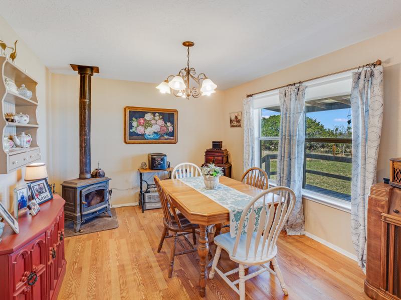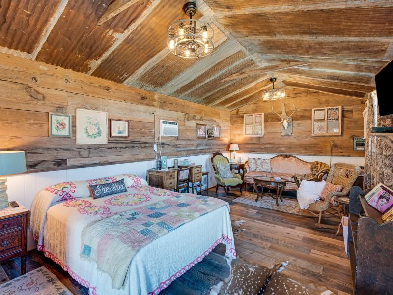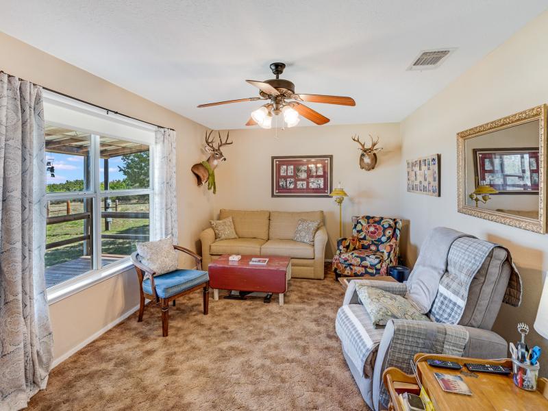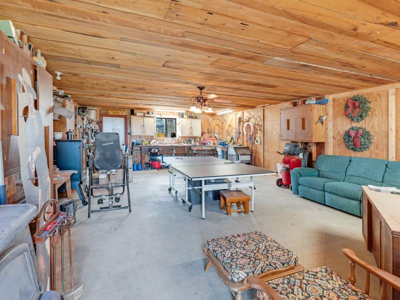 Improvements on the ranch are thoughtfully designed, well-maintained, and fully functional for both full-time living and weekend use. The main residence is a 2,040+/- square foot, 3-bedroom, 2-bath home featuring a spray foam insulated roof and new vinyl windows for enhanced energy efficiency. The home also includes a climate-controlled garage space with an ice machine and TV, creating an ideal setup for entertaining or relaxing after a day outdoors.