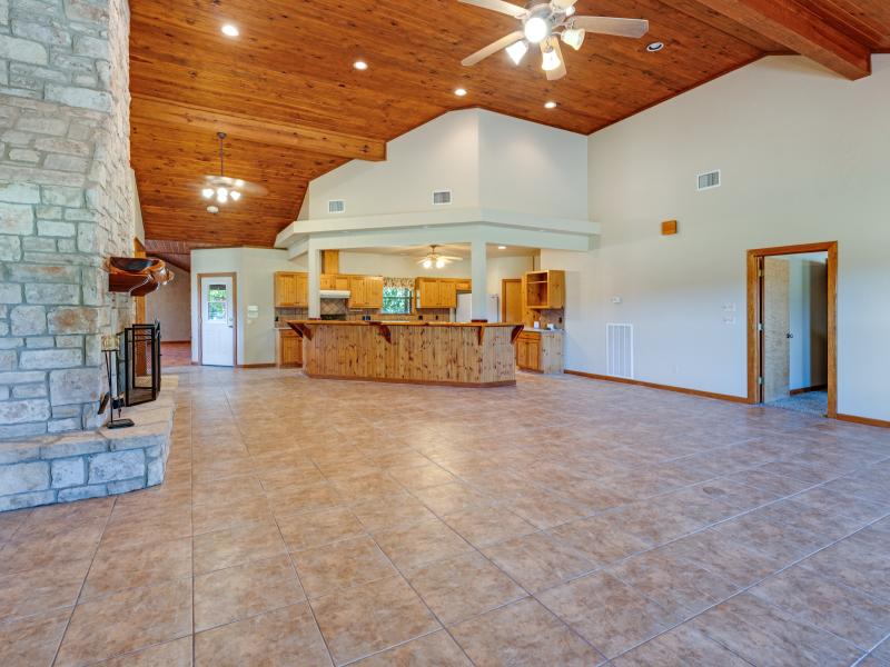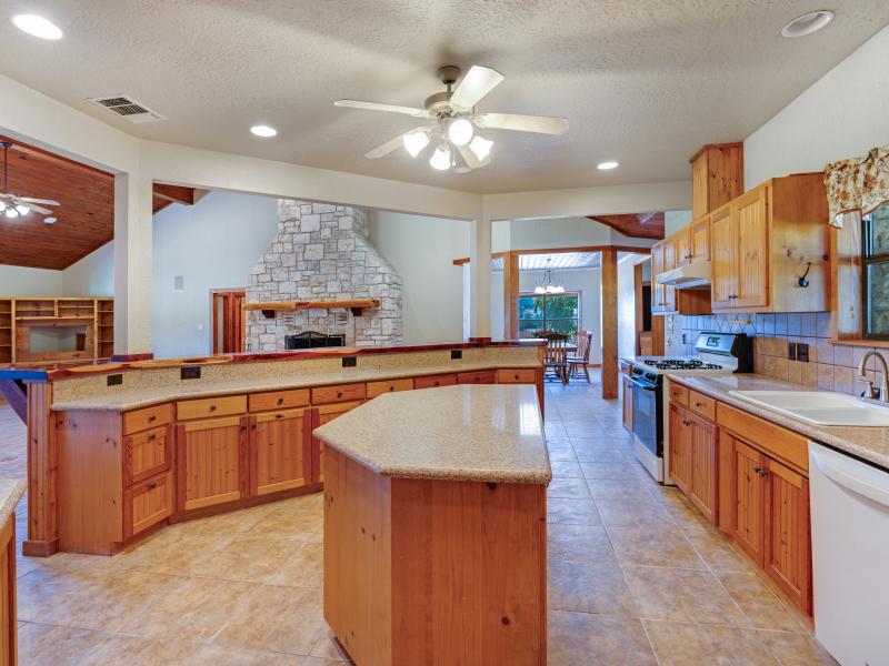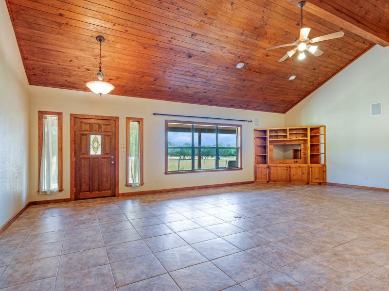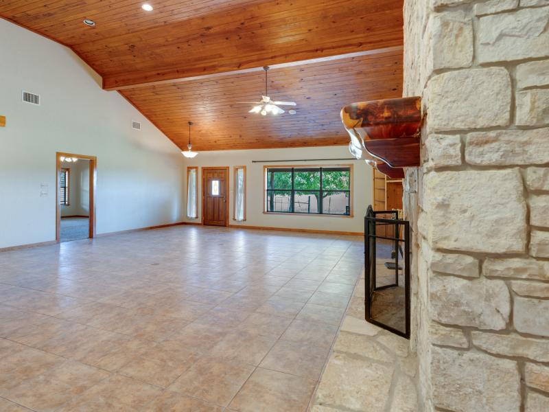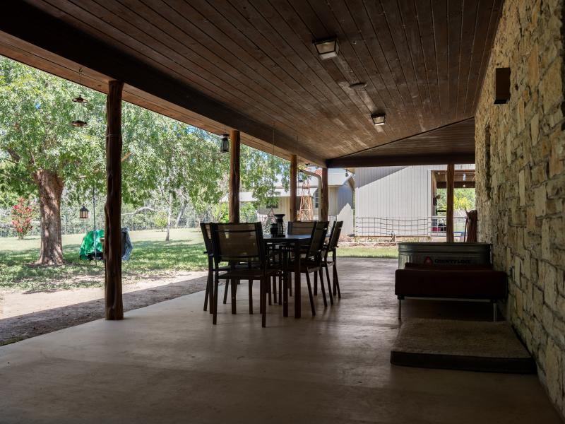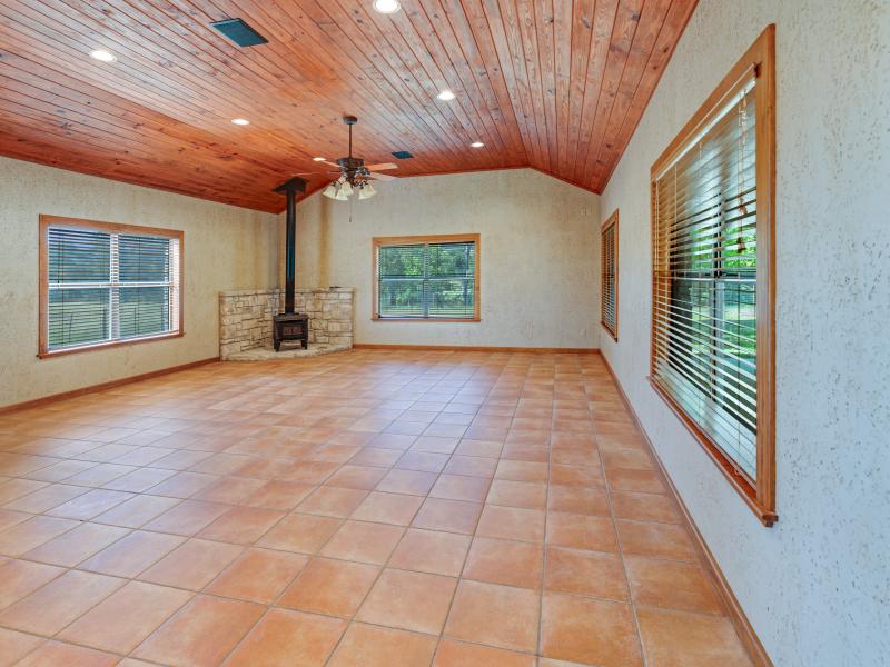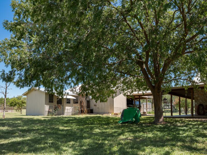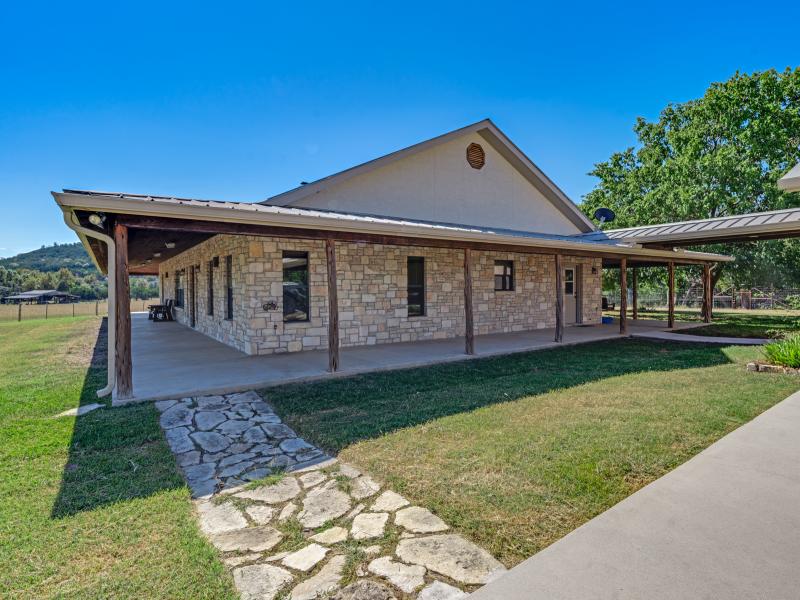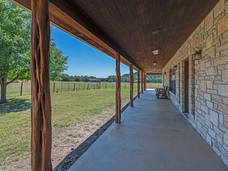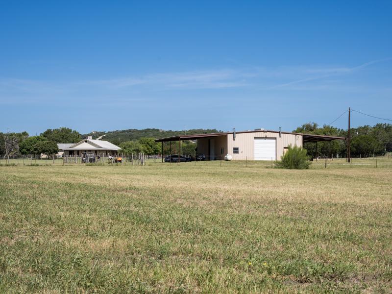 The custom-built main home showcases soaring pine ceilings in the living room, a striking stone fireplace, and a beautiful cedar custom counter top!. The thoughtful floor plan includes two spacious living areas, 3 bedrooms / 2 bathrooms, and expansive wraparound covered porches that engulf Hill Country views. The property also boasts a 40' x 60' heated workshop with dual 25' x 60' covered awnings, a separate manufactured home (2 bed / 2 bath) that is currently leased month-to-month—ideal for a foreman’s quarters or guest lodging along with an additional hay barn/ shed for storage!