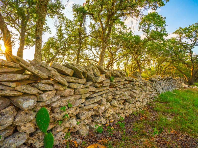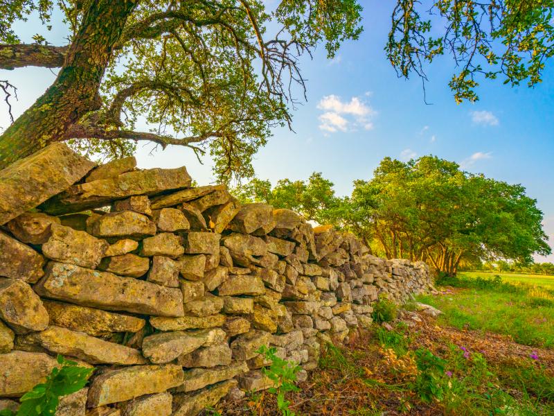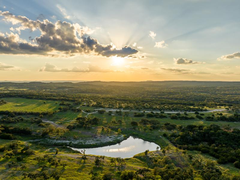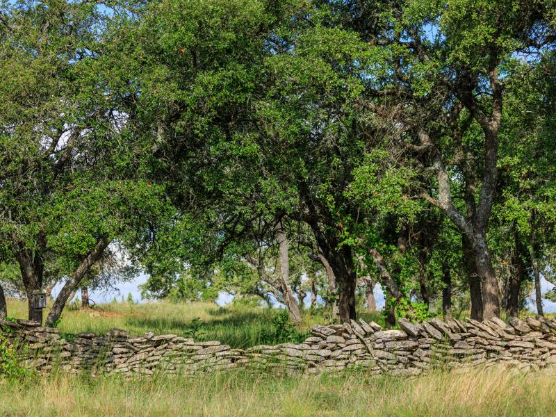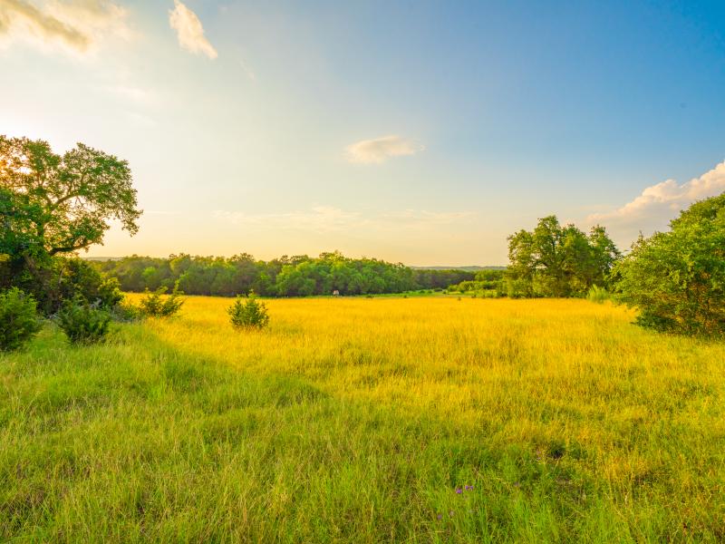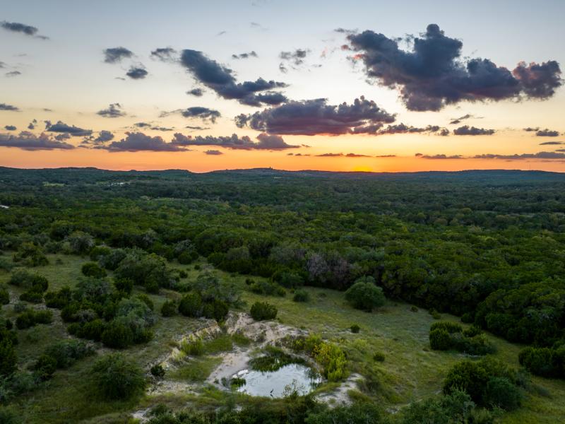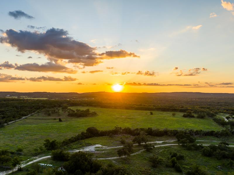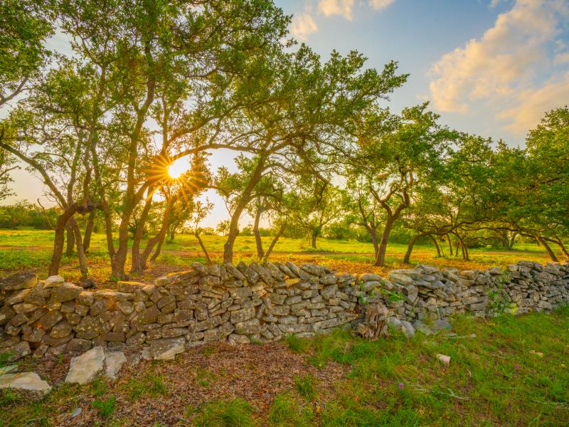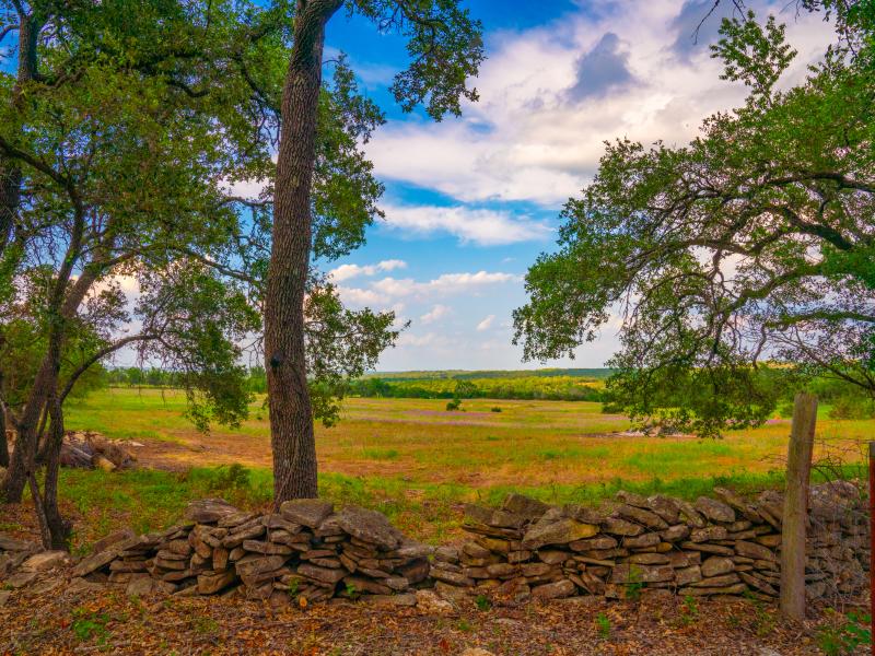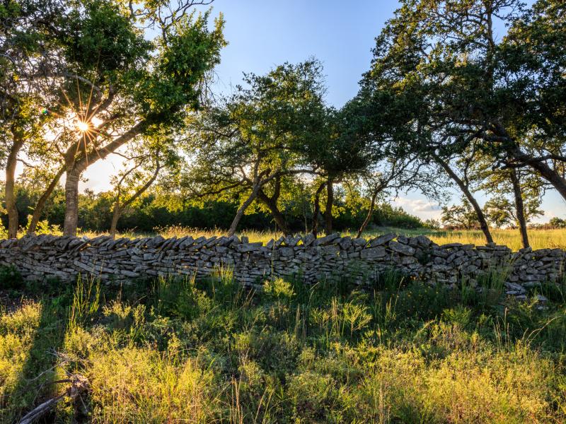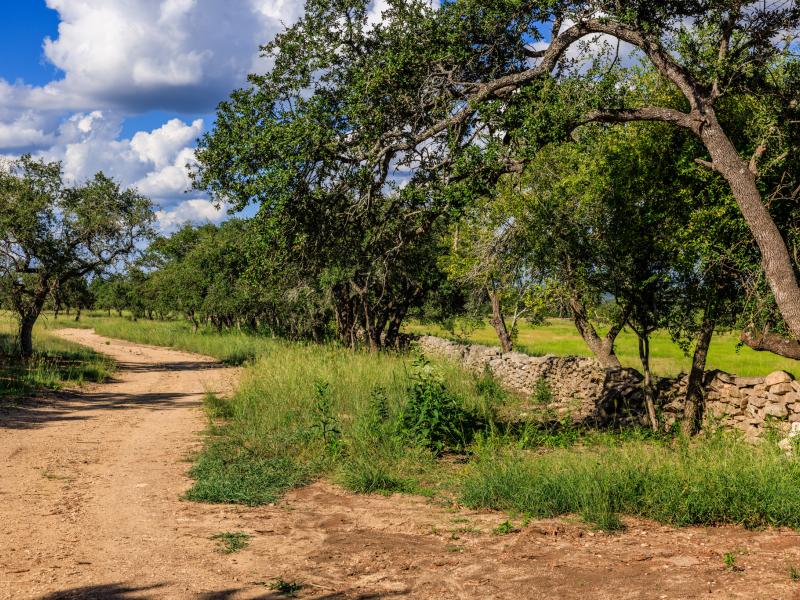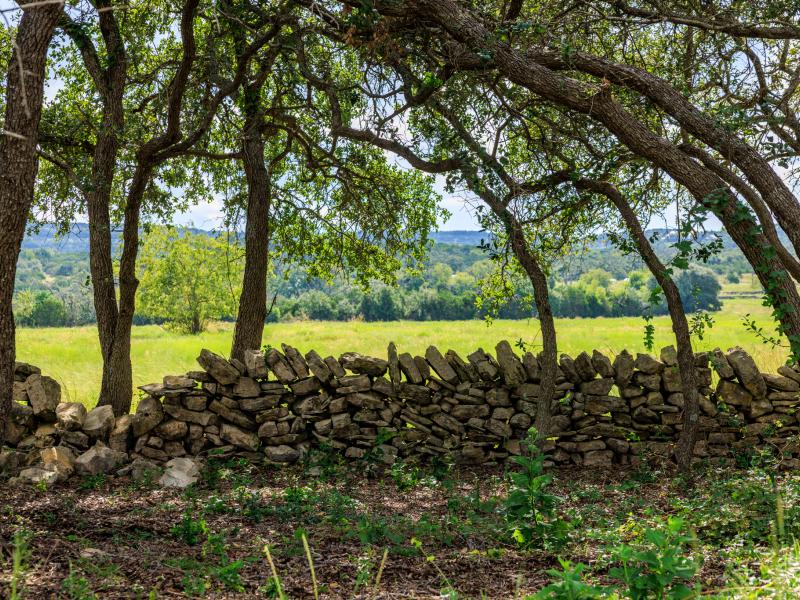 The terrain at Lago Vista Ranch is a true reflection of Hill Country beauty. Dramatic elevation changes of more than 140 feet, ranging from 1,240 to 1,380 feet, create sweeping 360-degree vistas ideal for a future homesite. Rolling meadows blend seamlessly with heritage groves of live oaks, cedar elms, and sycamores, while carefully managed cedar stands provide additional habitat for wildlife. South Onion Creek meanders through the property, adding both charm and utility, while improved pastures, lush native grasses, and 4,450 feet of historic hand-stacked stone walls built by early settlers highlight the ranch’s rich character.