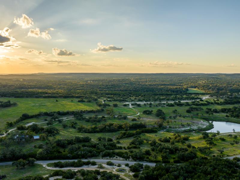 Ideally situated, Lago Vista Ranch is just 11 miles southwest of Dripping Springs, 12 miles northwest of Wimberley, 14 miles west of Driftwood, 17 miles east of Blanco, and 25 miles southwest of Bee Cave. Downtown Austin lies only 34 miles away, making the property convenient for both everyday access and weekend escapes. With extensive frontage on two paved county roads, the ranch offers a wide range of possibilities.