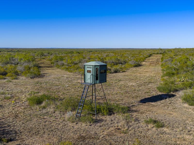 Rancho Arroyo Escondido features gently rolling terrain with approximately 100 feet of elevation change, providing long views, excellent drainage, and highly diverse habitat. The ranch’s native South Texas brush communities include live oak, post oak, mesquite, huisache, blackbrush, granjeno, prickly pear, guajillo, and scattered elms, creating natural cover, thermal protection, and travel corridors for deer and other wildlife. Fertile soils, open pastures, and native grasses are woven throughout the property, providing both forage and hunting opportunities.