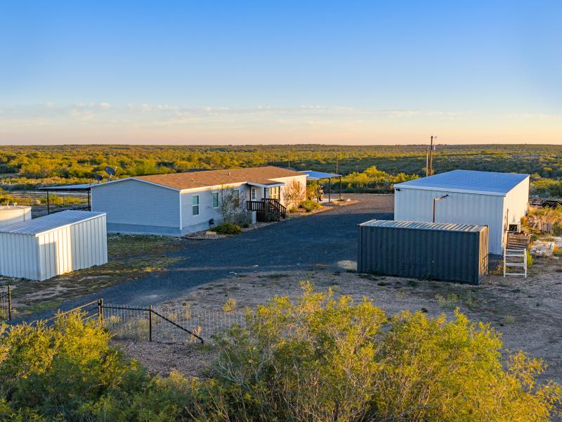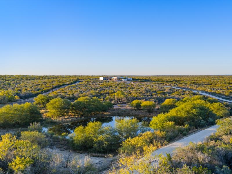 Two large metal equipment barns provide ample storage for equipment, UTVs, and ranch supplies, with flexibility to accommodate future additions such as a walk-in cooler. A well-developed internal road system provides smooth, reliable access throughout the ranch, connecting all major pastures, water features, and hunting areas.