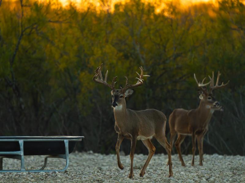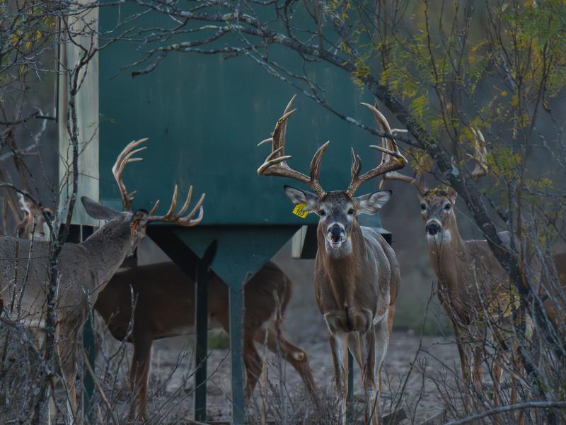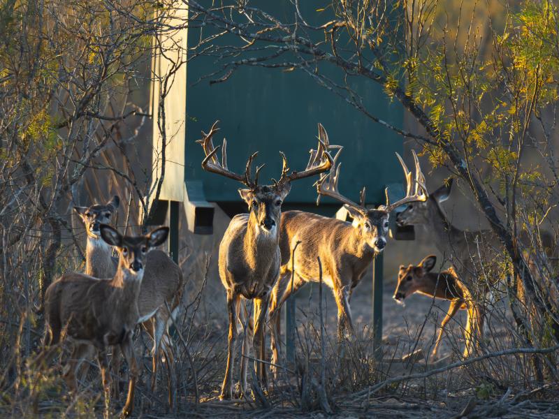 Edible flora and fauna abound, including native grasses, acorns, berries, mesquite beans, and other forage that sustain wildlife naturally, increasing both herd health and hunting success.