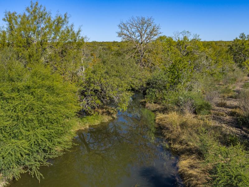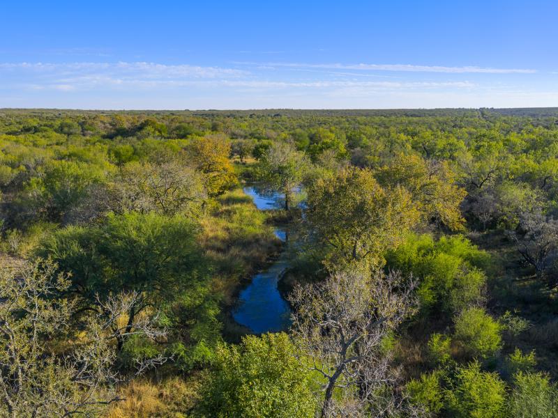 Approximately 115.7± acres of fertile bottomland along both sides of West Squirrel Creek boast monster oak trees lining the water’s edge, forming a stunning riparian corridor that serves as both a scenic centerpiece and critical wildlife habitat. Long-range vista views stretch across guajillo ranges as you travel the ranch’s roads, adding breathtaking perspective and making every drive a visual experience. Seasonal draws, natural drainages, and upland ridges enhance travel routes and create ambush points for whitetail deer, turkey, and other game species, making the ranch ideal for tactical, high-success hunting.