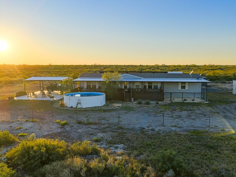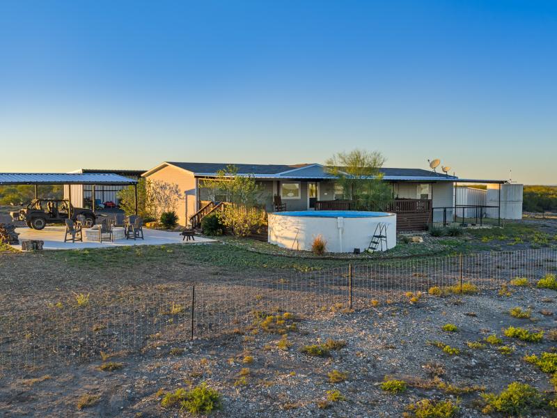 Improvements are thoughtfully designed to support both comfortable living and efficient ranch operations. A 2,000± square-foot, four-bedroom, two-bath manufactured home serves as the ranch headquarters and features a full-length deck and a swimming pila overlooking the lake—an exceptional setting for entertaining and relaxing after a day in the field.