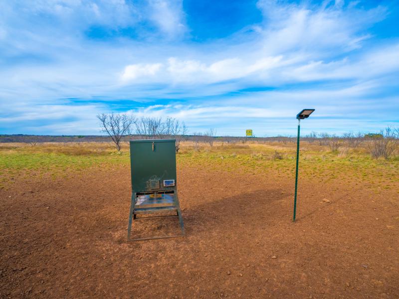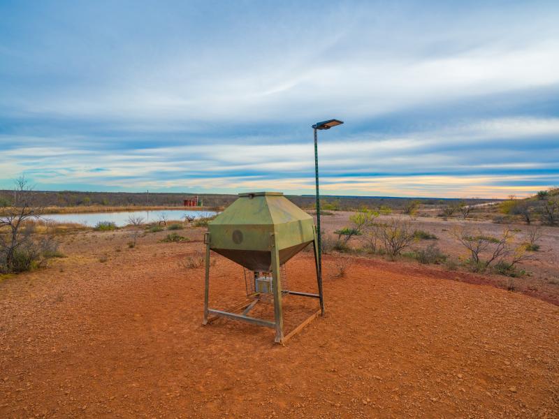Water is a defining feature of the ranch, highlighted by nine well-distributed lakes and ponds that provide consistent water sources for wildlife while enhancing the overall landscape. Seasonal draws further support the property, and a rainwater collection system with a 2,500-gallon storage tank adds an element of sustainability and reliability to the ranch’s water resources.