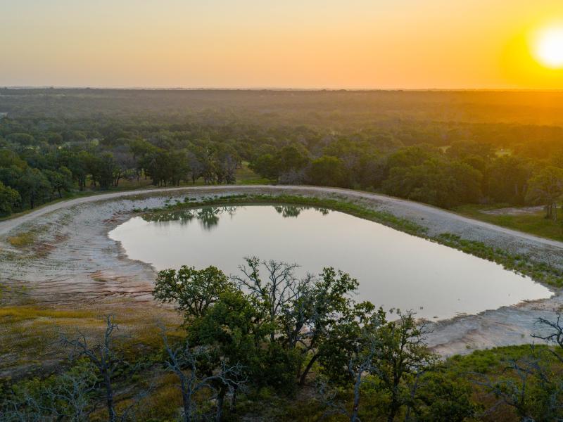 The ranch features gently rolling to moderately elevated terrain with over 100 feet of elevation change, providing expansive views and multiple build sites. A scenic lake of approximately 2± acres serves as a focal point of the property, offering dependable surface water, fishing opportunities, and wildlife attraction. In addition, a secluded duck pond is tucked away within the ranch, thoughtfully developed for waterfowl hunting and established with blinds and feeders, creating a ready-to-use setup for duck season. The land is composed of native grasses, mature Oaks, Post Oaks, Pecans, and selectively managed cedar, supporting both livestock and wildlife.