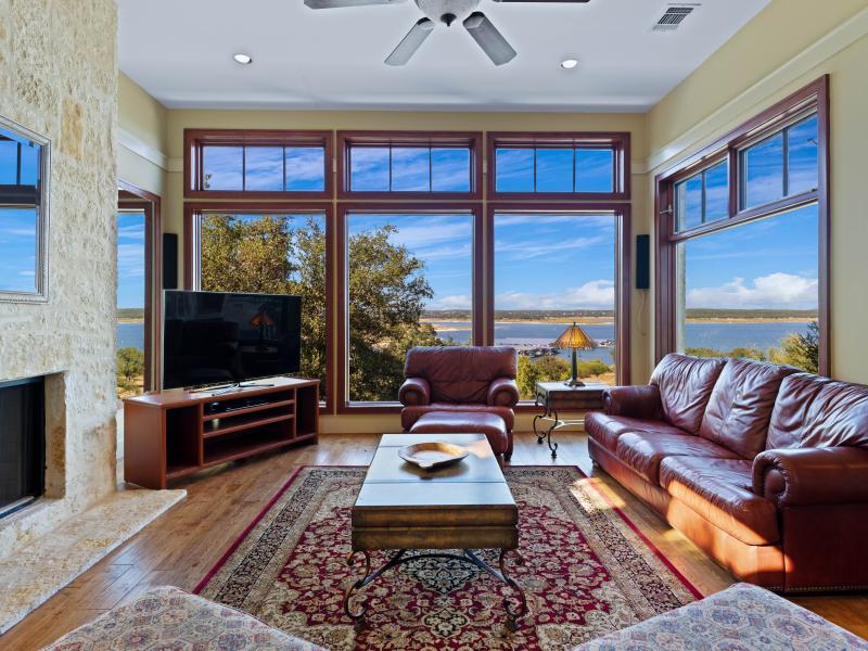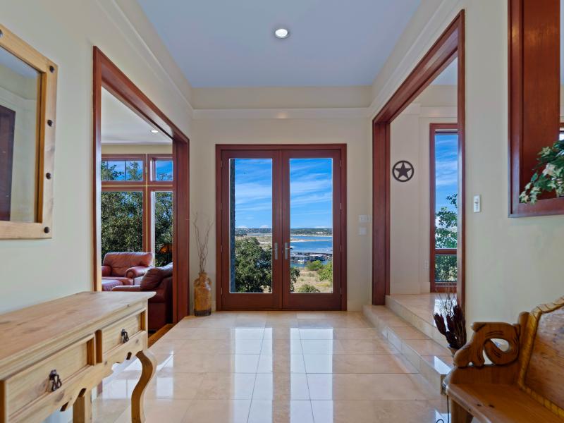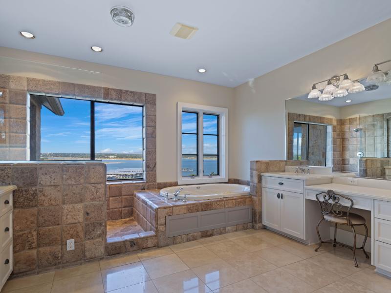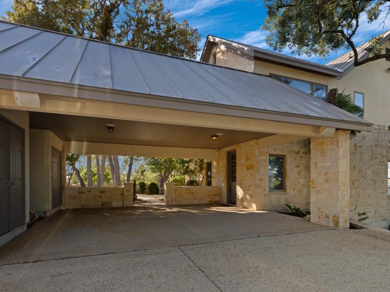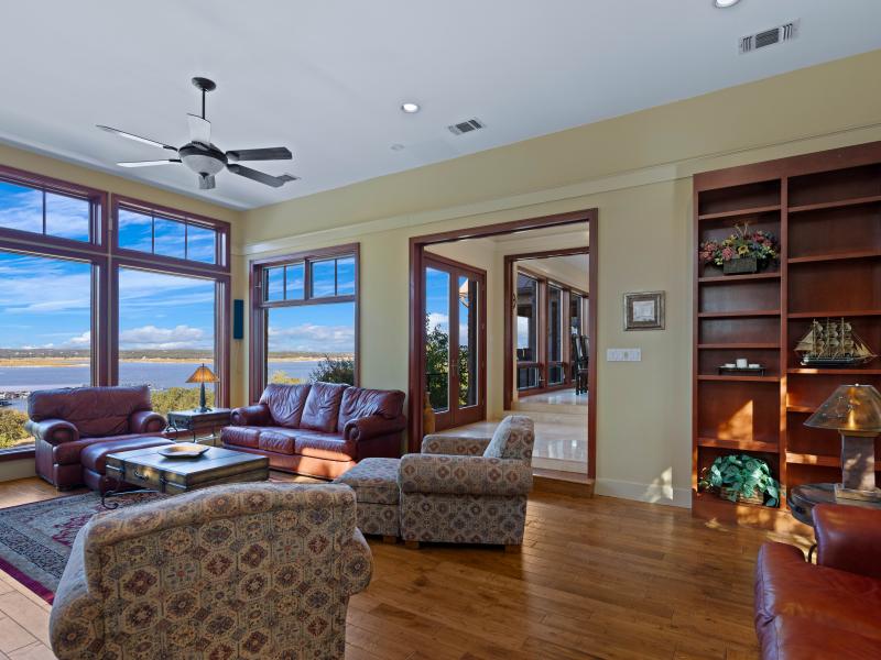 The estate’s 3.65 ± acres are among the largest waterfront parcels in Kings Cove, providing a rare sense of space and privacy. Native oaks, manicured landscaping, and natural limestone outcroppings frame long views across the lake’s blue waters. Gentle slopes lead down to the shoreline, creating usable outdoor areas for recreation, while mature tree cover provides shade nd seclusion. The size and topography of this lot distinguish it as one of the most versatile and scenic properties on Canyon Lake.