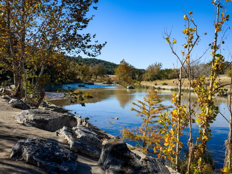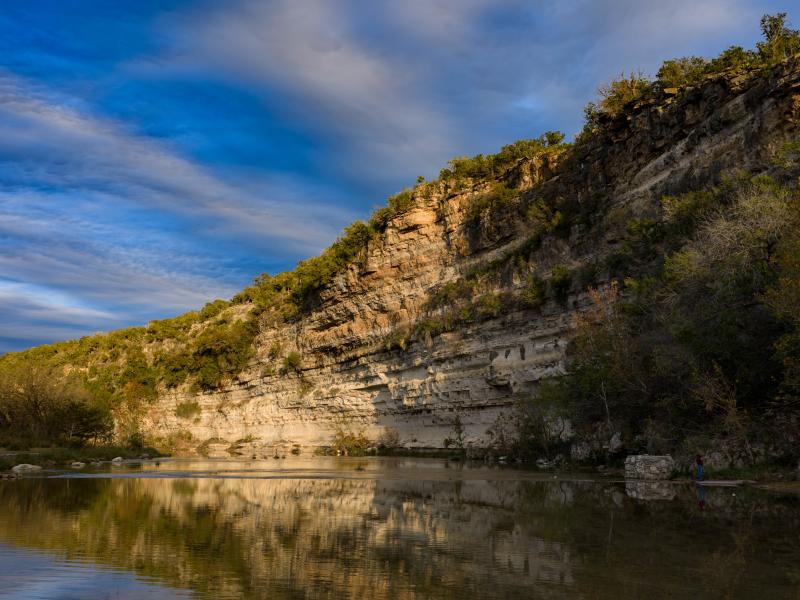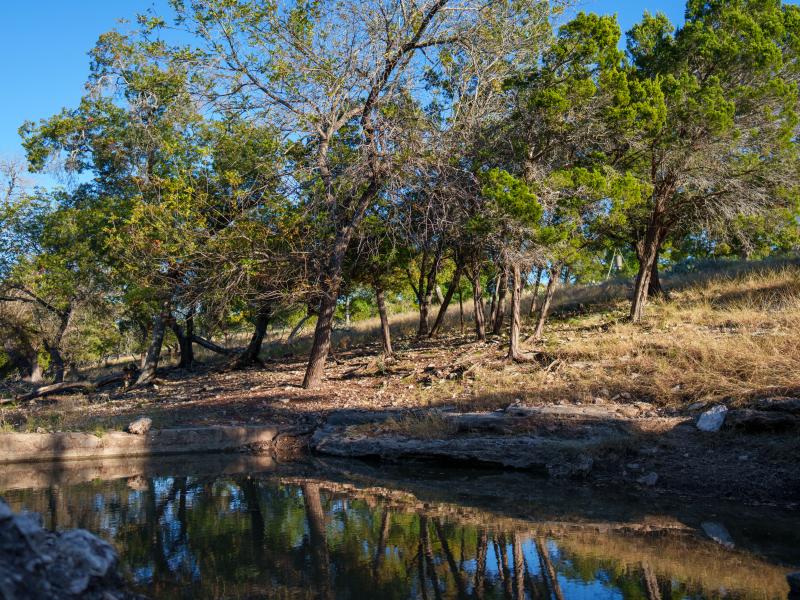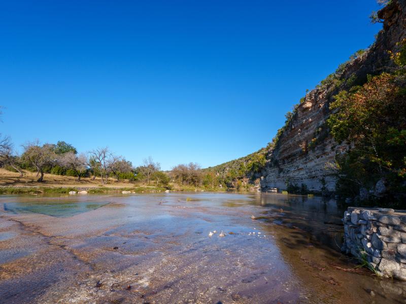 Broken Halos River Ranch showcases over 1,600 feet of prized North Fork Guadalupe River frontage. Along these banks, thoughtfully crafted, park-like settings have been shaped and stabilized with hand-laid river rock retaining walls. The riverfront artfully balances natural characteristics with clever and thoughtful improvements, highlighted by an exceptional spring box where clear, life-giving water bubbles directly from out of the cliff.