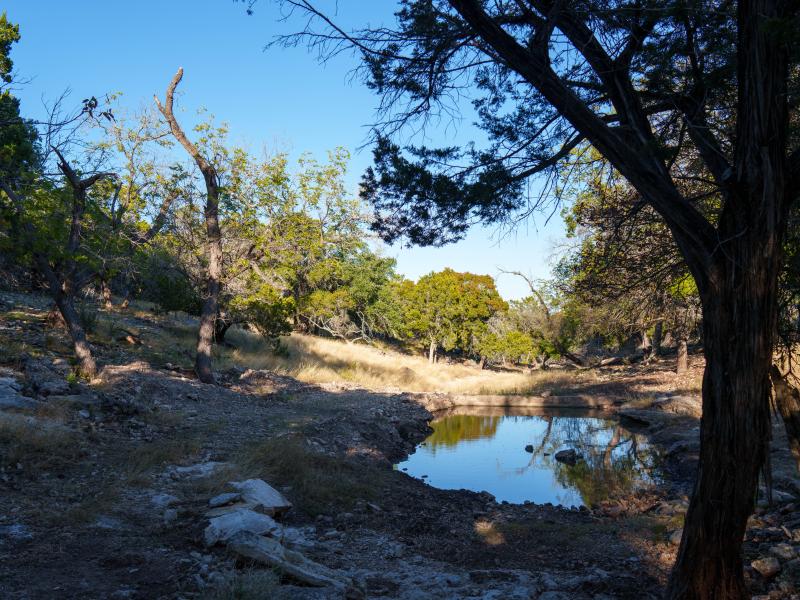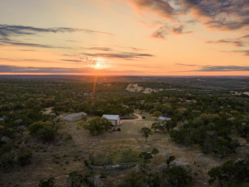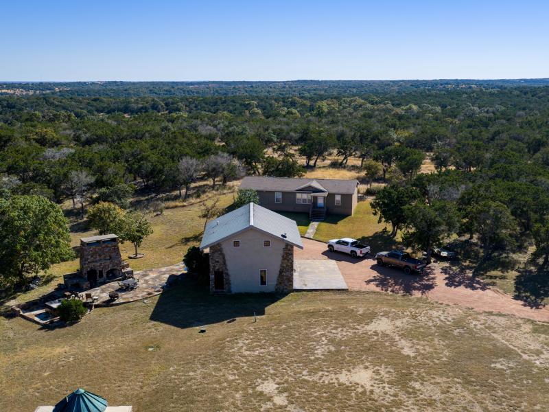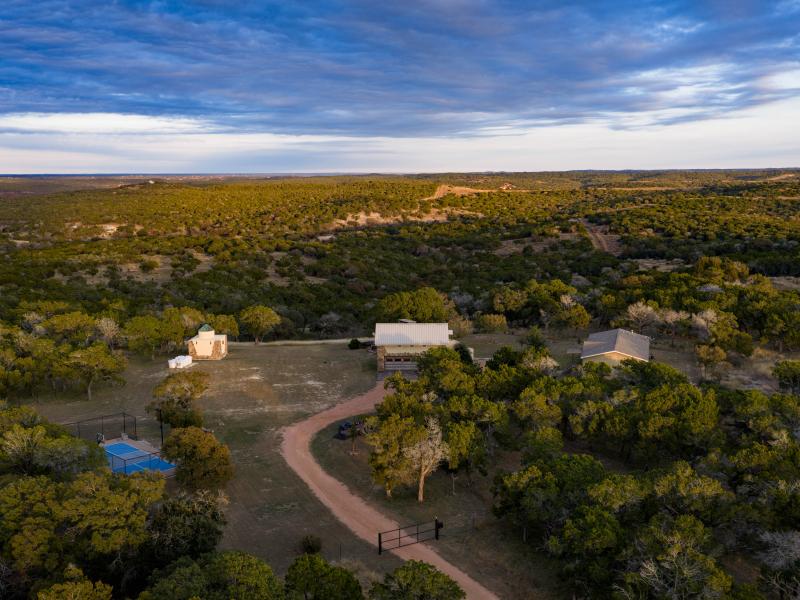 Near the river and within the heart of the ranch, numerous additional springs well up, placing this ranch as one of the sources of the river’s headwaters, which is a rare and highly sought after distinction in the Hill Country. Water infrastructure is also impressive, with two dedicated wells: one servicing the homes and improvements, and the other sustaining grass for livestock and wildlife while keeping a 30,000± gallon holding tank full, that’s built to function as both a water reserve and a swimming pool.