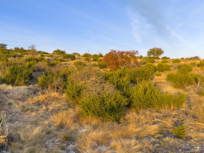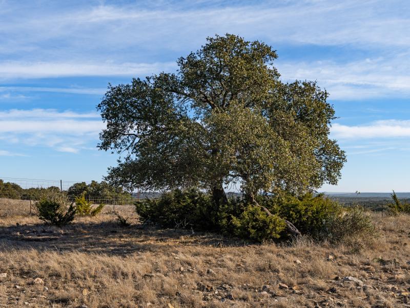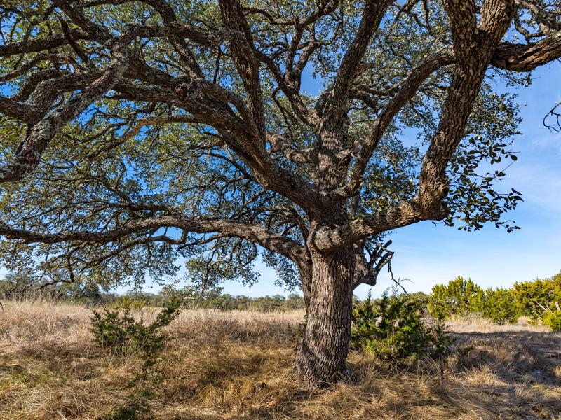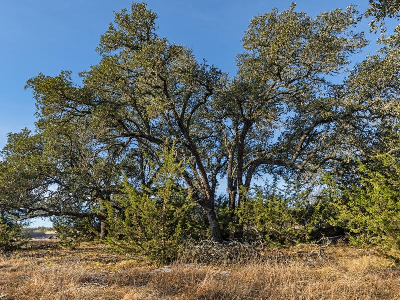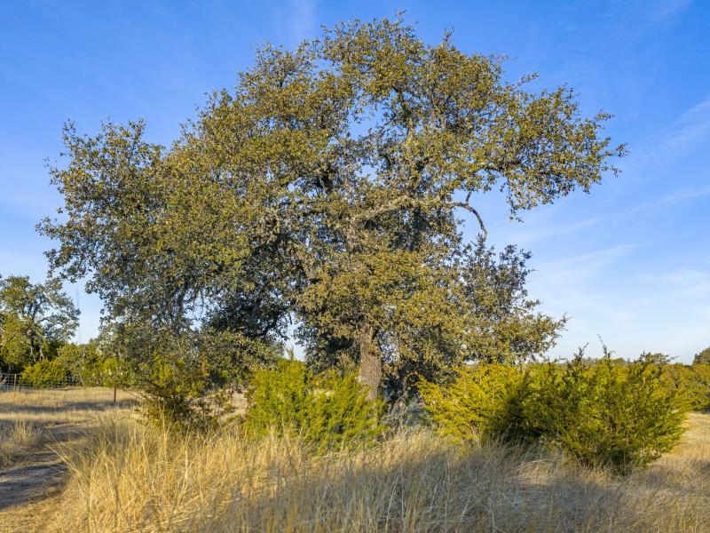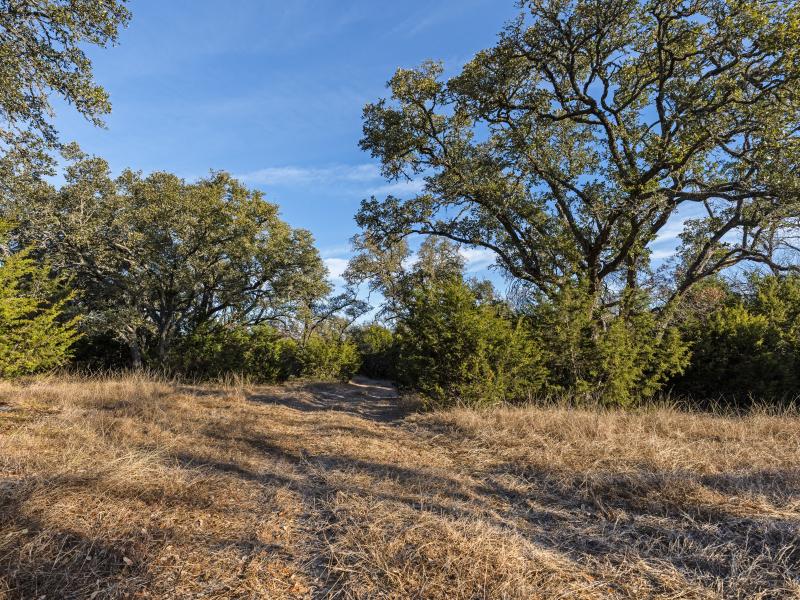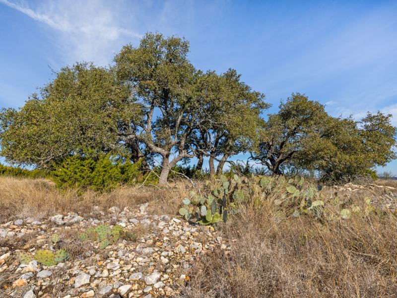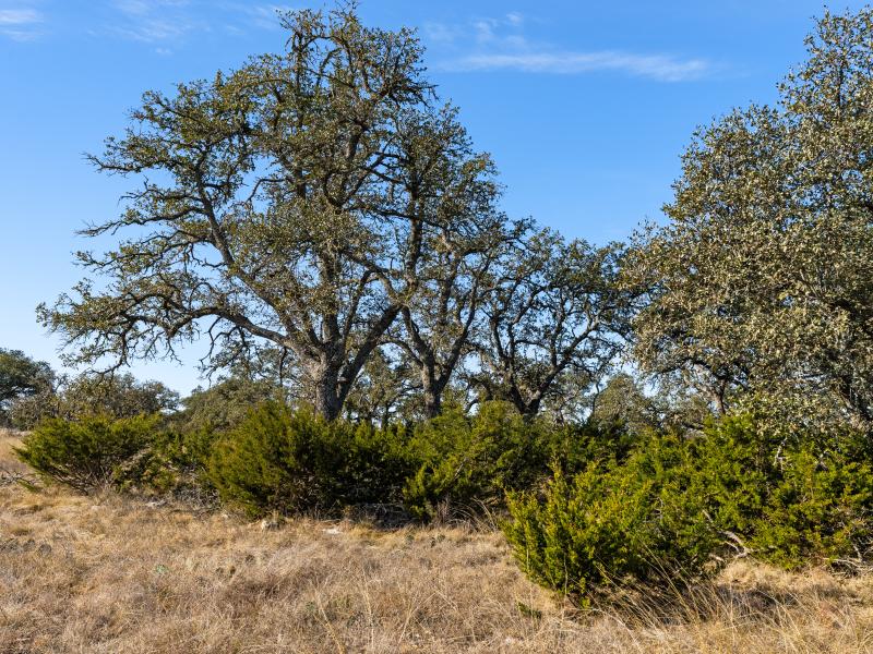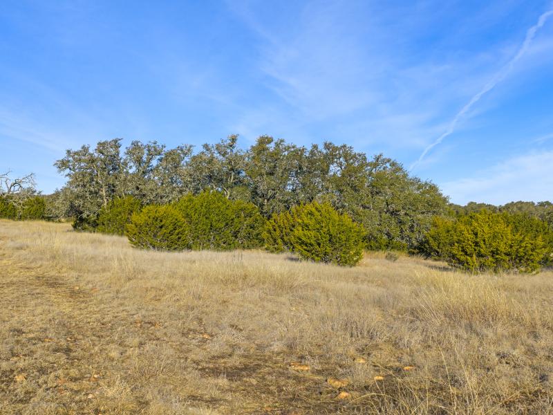 The land supports healthy stands of native grasses including bluestem, rye, and grama, while a diverse tree canopy of Live Oak, Post Oak, Pecan, Mesquite, and Cedar provides shade and habitat. In the canyon bottoms, mature Black Walnut and Cherry trees add beauty and seasonal color rarely found on many Hill Country ranches.