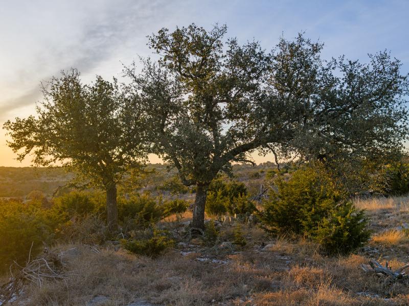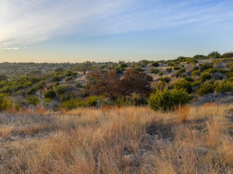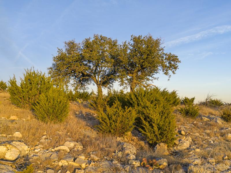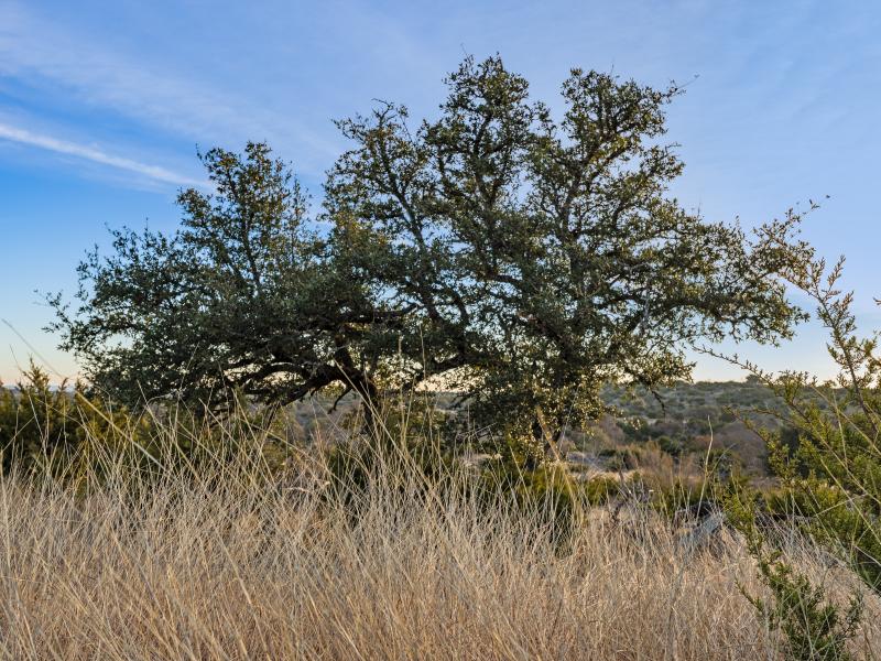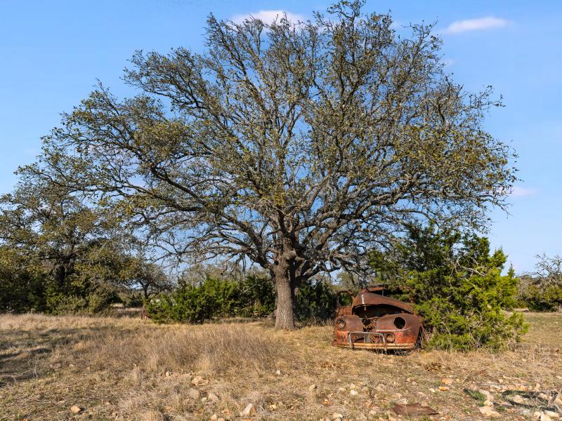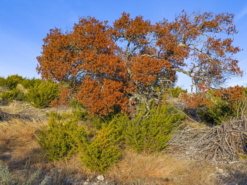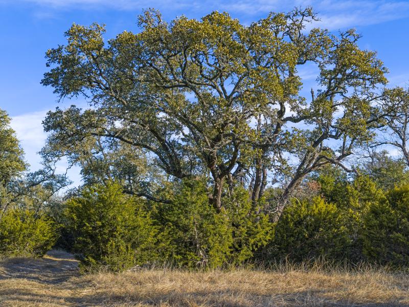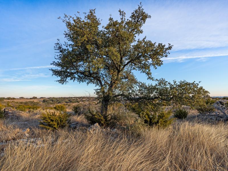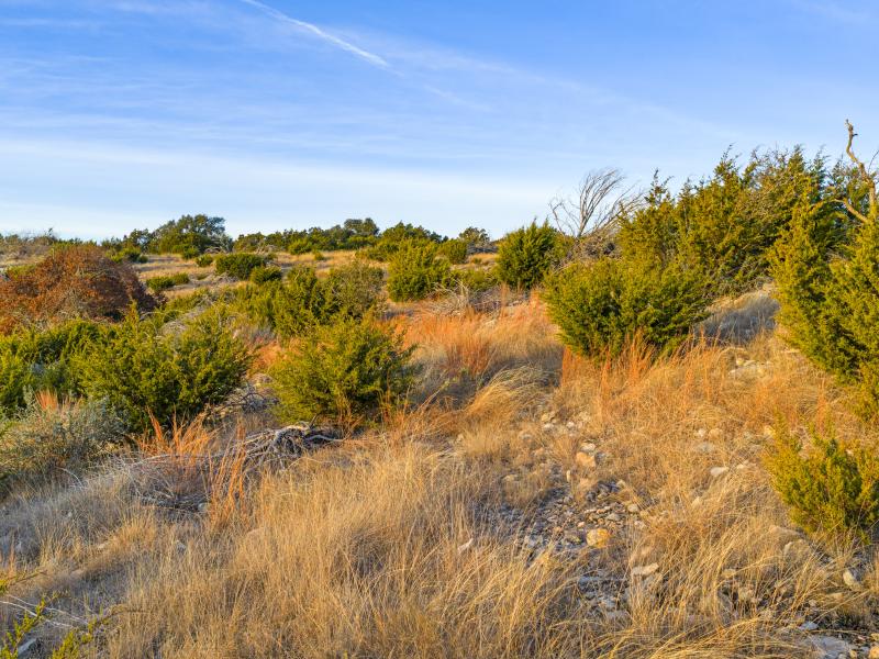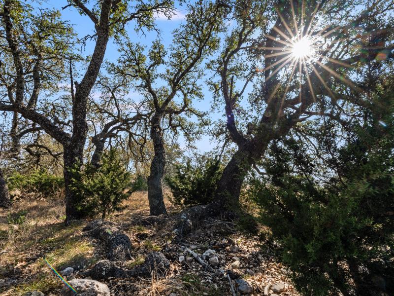 The land supports healthy stands of native grasses including bluestem, rye, and grama, while a diverse tree canopy of Live Oak, Post Oak, Pecan, Mesquite, and Cedar provides shade and habitat. In the canyon bottoms, mature Black Walnut and Cherry trees add beauty and seasonal color rarely found on many Hill Country ranches.
