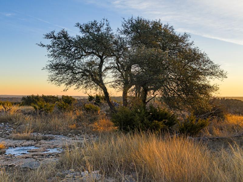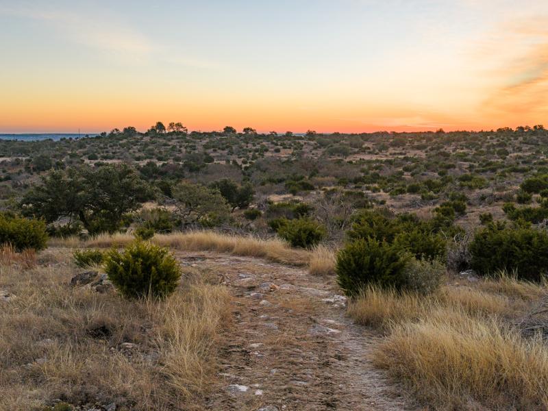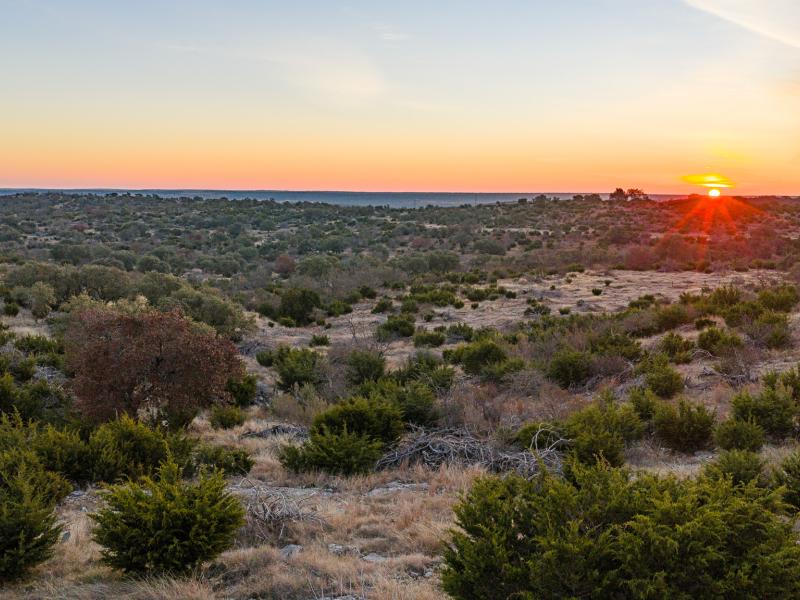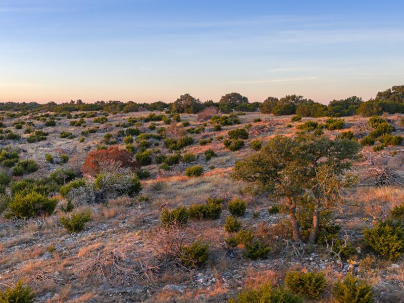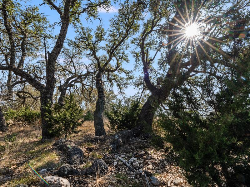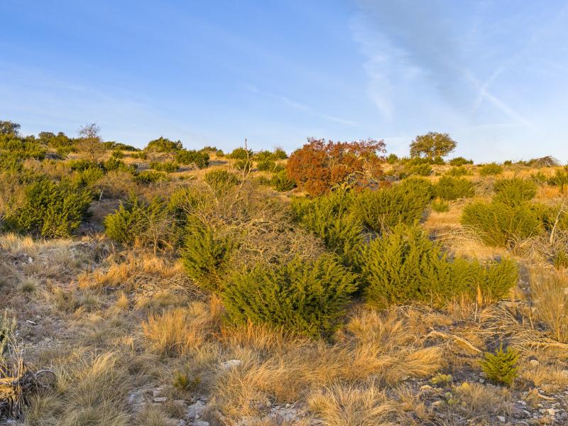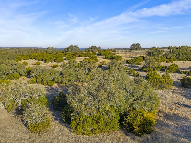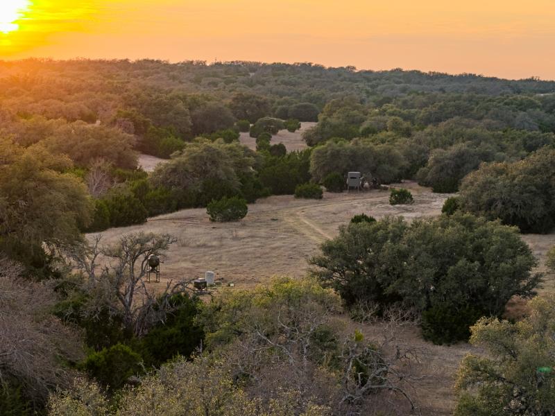 The landscape of Lonesome Canyon Ranch showcases classic Hill Country character, with gently rolling terrain that transitions into two prominent canyon systems cutting through the property. These canyons add depth, visual interest, and natural movement to the land, while also serving as key wildlife corridors. Strategic cedar clearing has enhanced long-range views and improved grass production while preserving mature hardwood stands. The ranch supports healthy native grasses including bluestem, rye, and grama, ideal for both livestock and wildlife. A diverse canopy of Live Oak, Post Oak, Pecan, Mesquite, and Cedar is spread throughout, with mature Black Walnut and Cherry trees found in the canyon bottoms—adding a unique and scenic element rarely seen on many Hill Country properties.