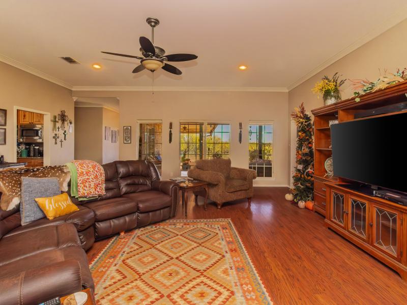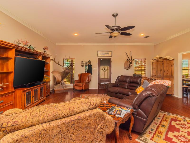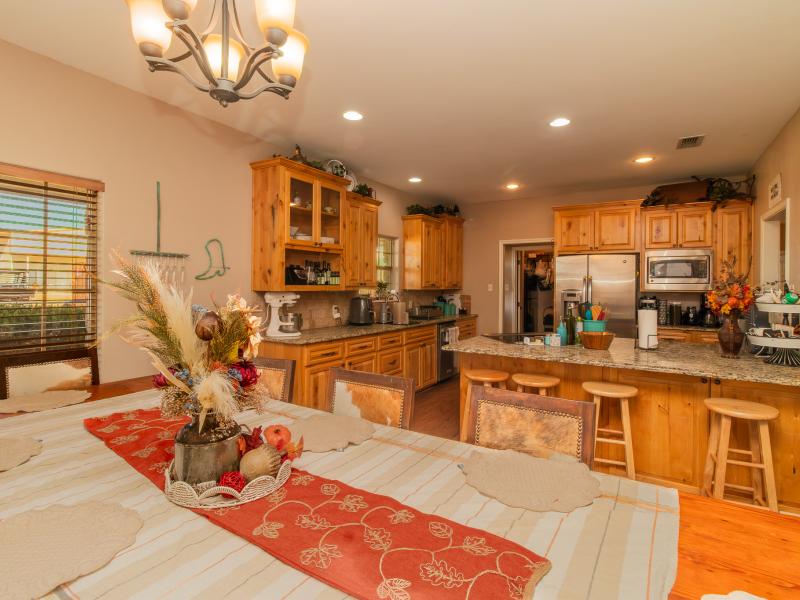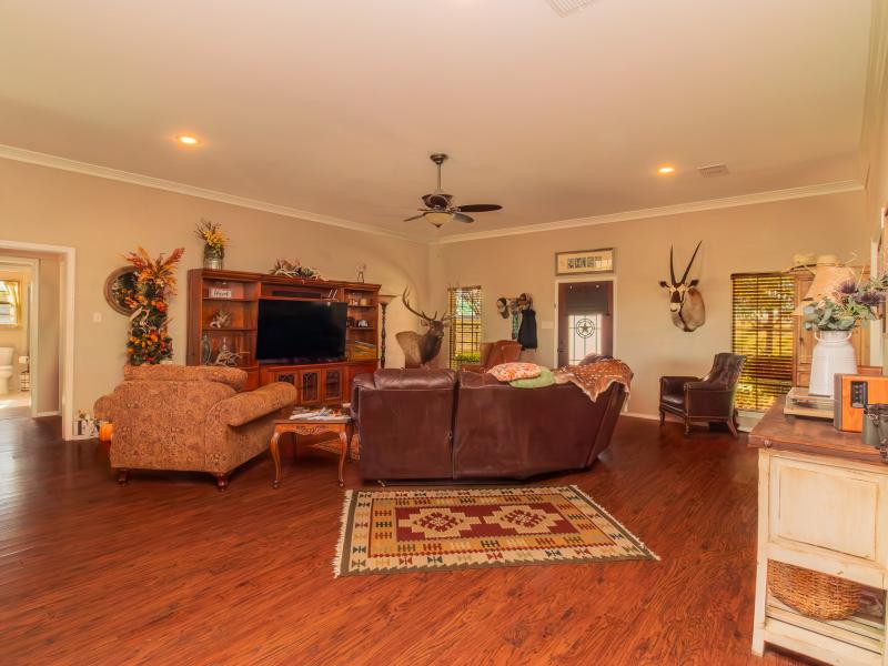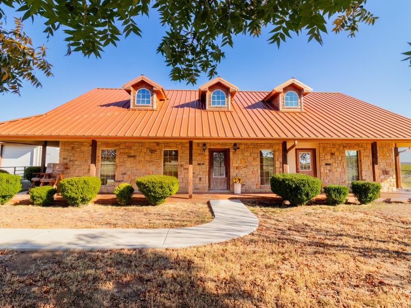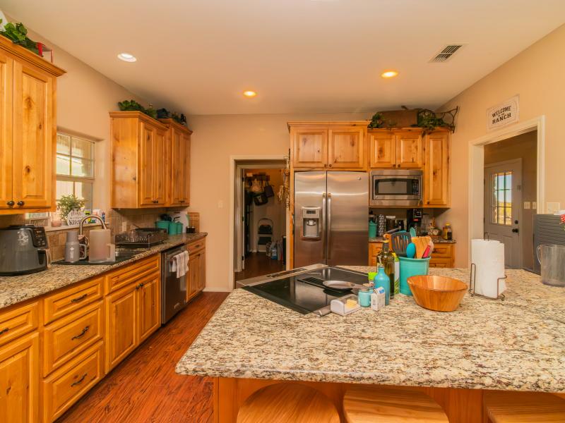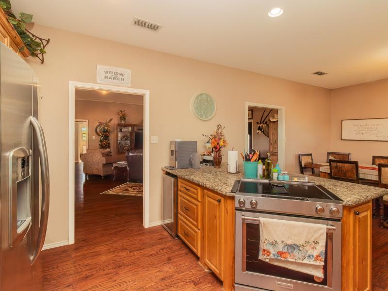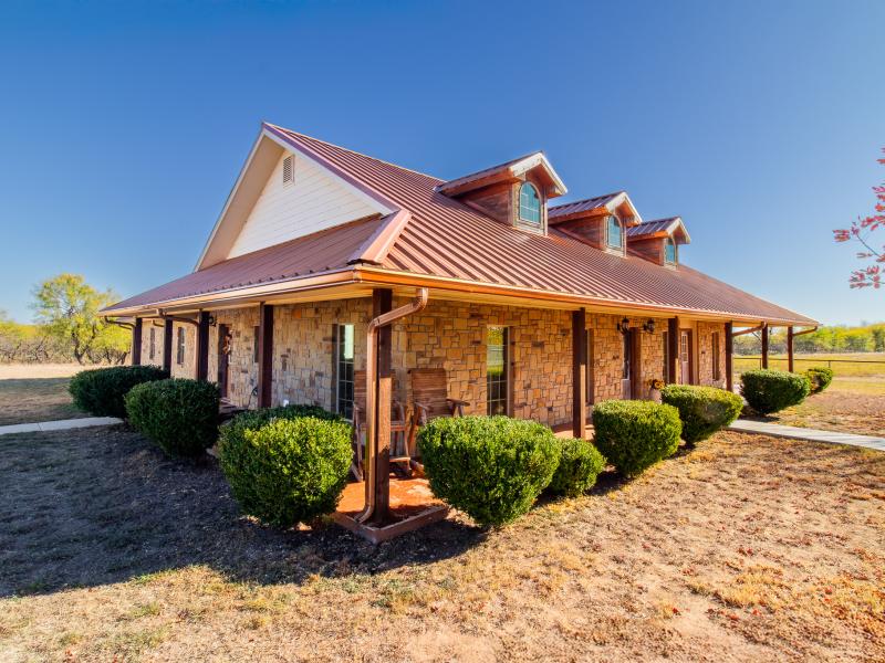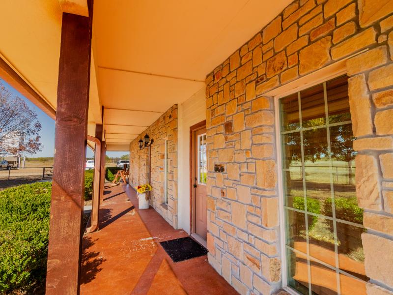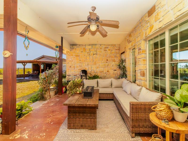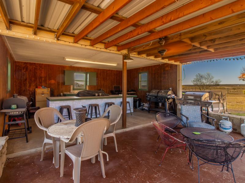 The ranch is exceptionally well improved, beginning with the 3 bedroom, 2.5 bath sandstone home built in 2009. With 2,166 sq. ft. of living space, the home features an open, split floor plan with a custom island kitchen, custom cabinetry, solid-surface countertops, a spacious dining area, and abundant natural light. The master suite includes a garden tub, walk-in tile shower, custom vanity, and large closet, while two guest bedrooms and a shared bath sit on the opposite end. A wrap-around porch, metal roof, charming outdoor kitchen, and sandstone exterior complete the home’s classic Texas ranch aesthetic.