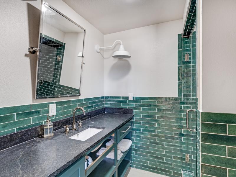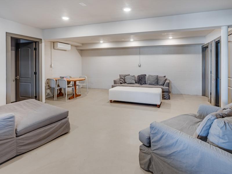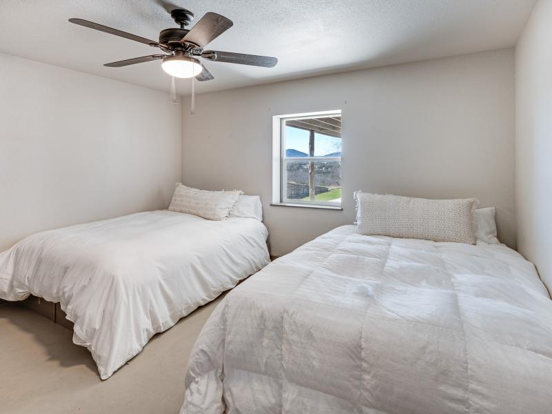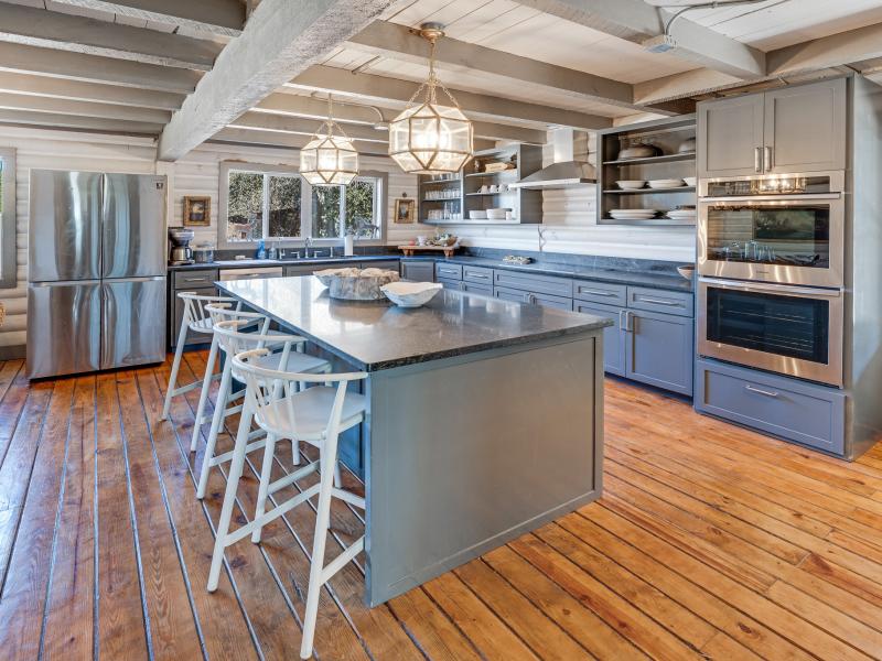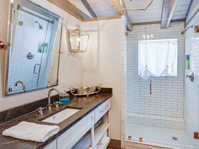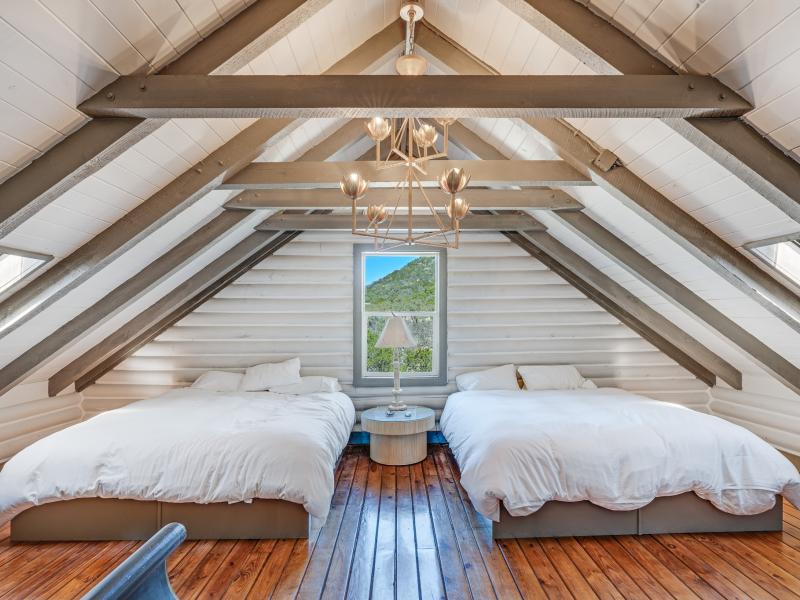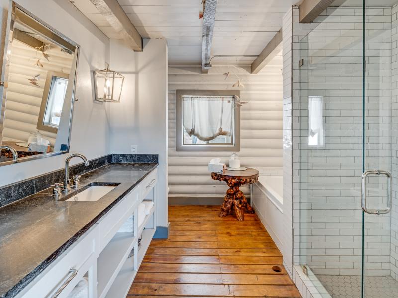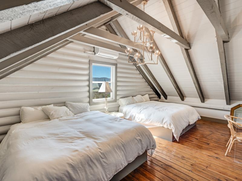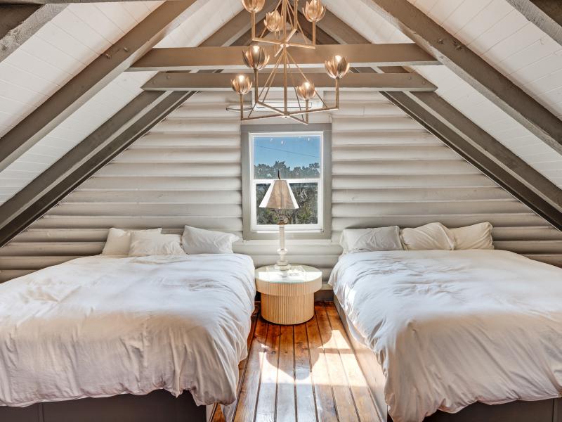 Inside, the vaulted ceilings create a sense of scale rarely found in properties of this size, while the two fireplaces add both architectural presence and everyday comfort. The residence is offered completely furnished, presenting a turnkey opportunity for immediate enjoyment or income production.