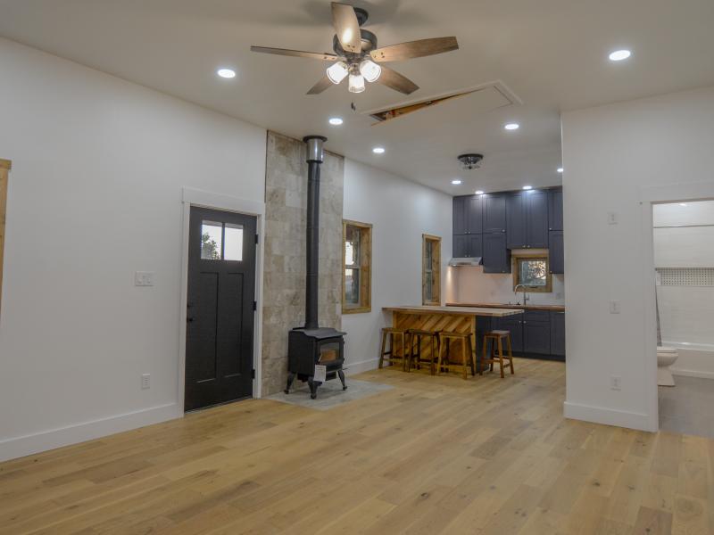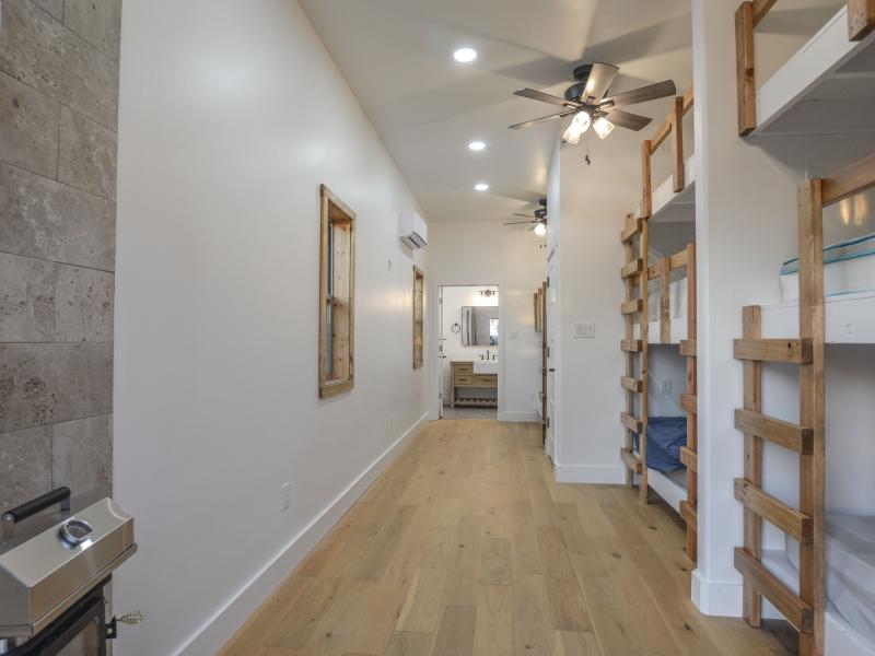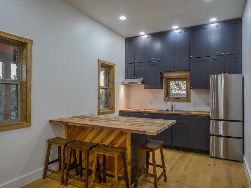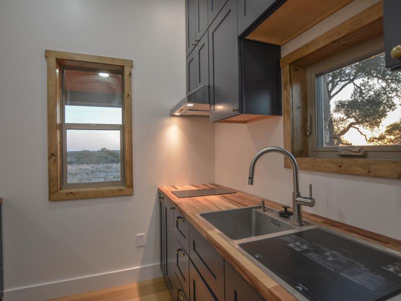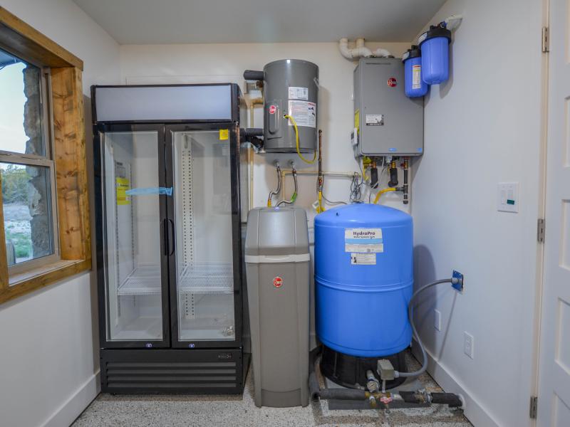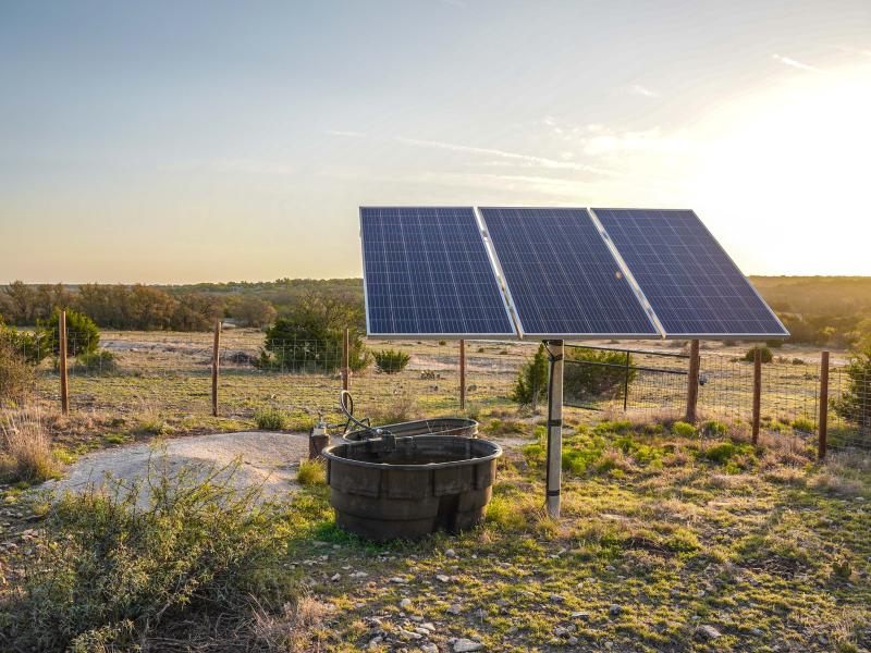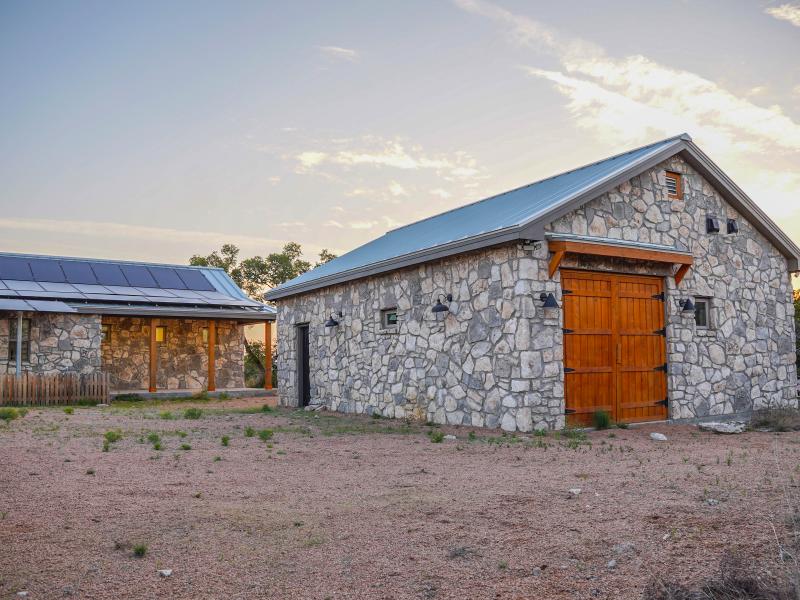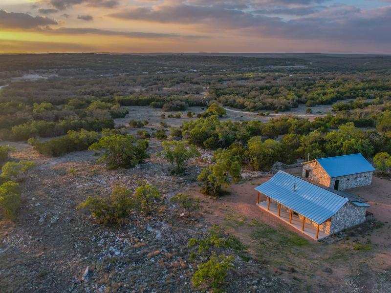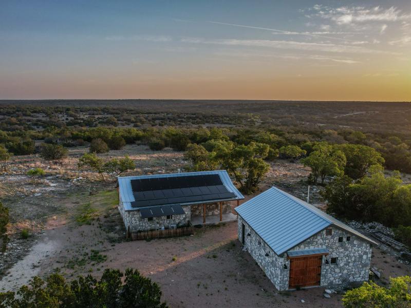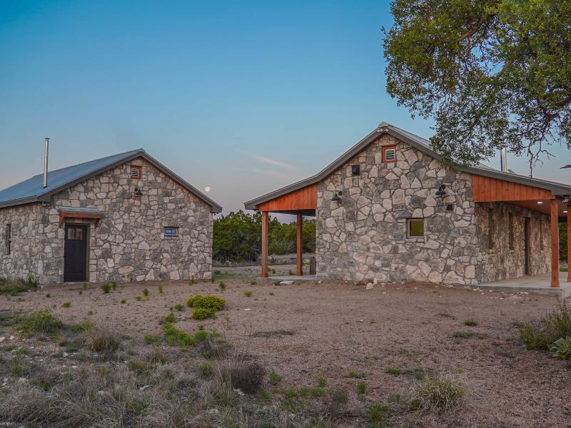 The headquarters is designed for functionality and comfort. Cabins provide sleeping space for 12–13 guests, two bathrooms, a full kitchen, and storage for vehicles and equipment. A pull-behind camper adds extra lodging options. Native stone touches and efficient layouts give the main home both charm and durability. The property runs primarily off-grid with a 12kW solar system and three water wells throughout the ranch— serving the headquarters and wildlife with its own solar pump. Electricity also crosses the property, allowing a new owner the option to tie into the grid if desired. An established road system provides access throughout the ranch.