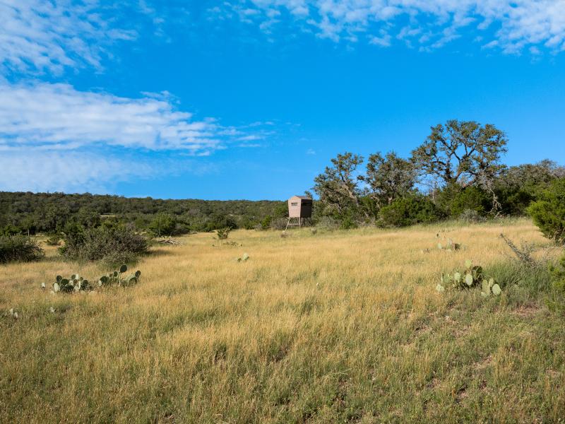 The Outpost Ranch is set up as a turn-key hunting destination. Multiple blinds, corn feeders, and protein stations are already in place, and the mix of open ground, ridgelines, and wooded draws supports excellent habitat. Whitetail deer, Axis, Blackbuck, turkey, and other game species are common, and the property’s northern boundary adjoins a large neighboring ranch, increasing wildlife traffic and enhancing privacy.