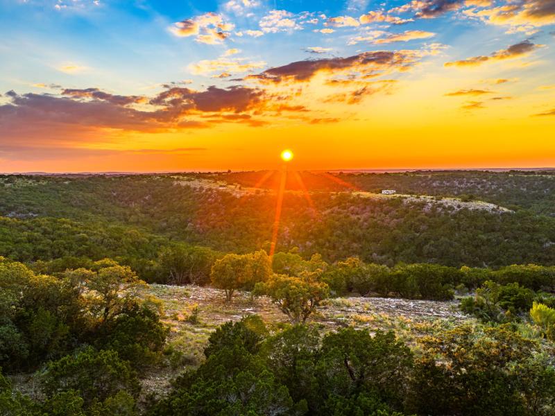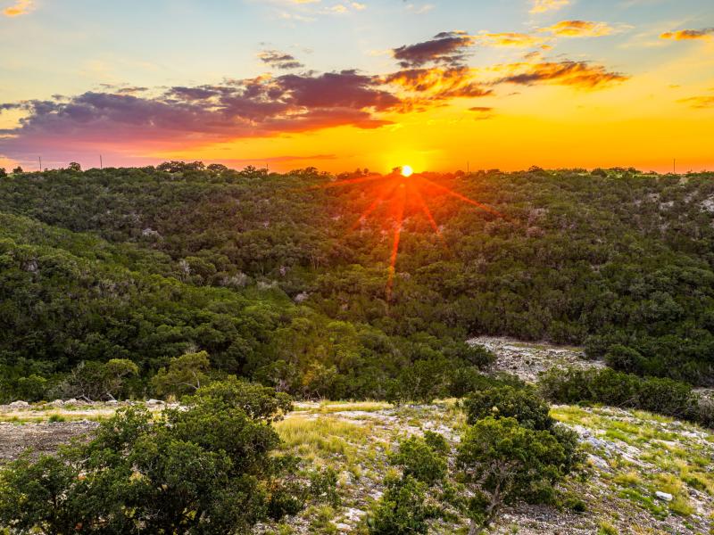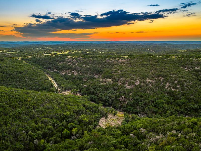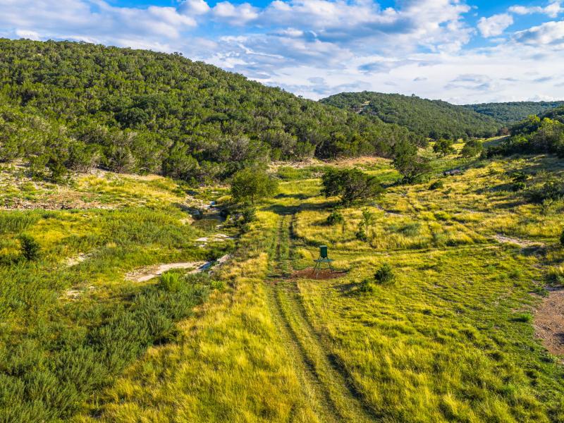 Bugle Spring Ranch encompasses 517.06 acres just 7.9 miles north of the charming town of Leakey and only 90 miles west of San Antonio. This expansive property captures the essence of the Hill Country with its dramatic topography, sweeping ridgelines, free-ranging exotics and native game, live water, and a rare combination of privacy and accessibility. Featuring elevations ranging from 1,950 to 2,350 feet, the ranch delivers commanding views in every direction and offers the versatility to support a wide variety of uses, from recreation to a long-term legacy estate, all accessed via a paved private road.