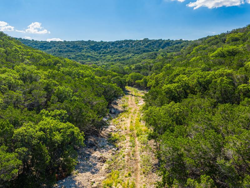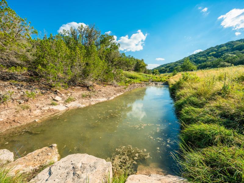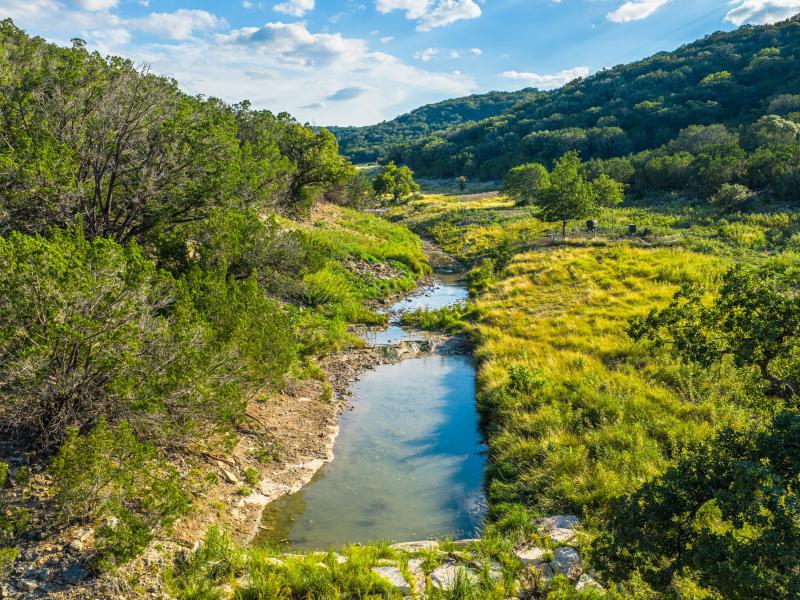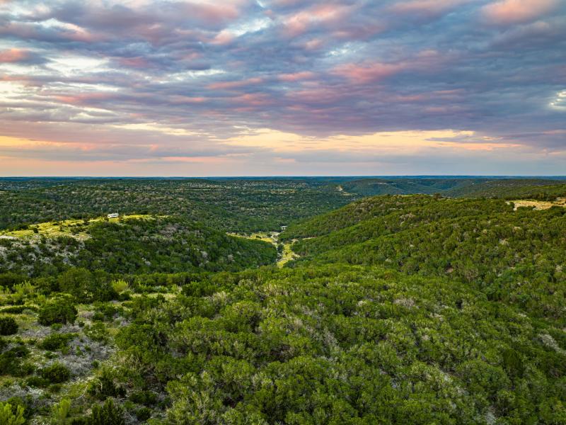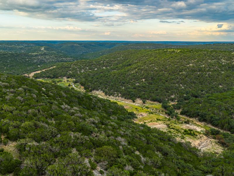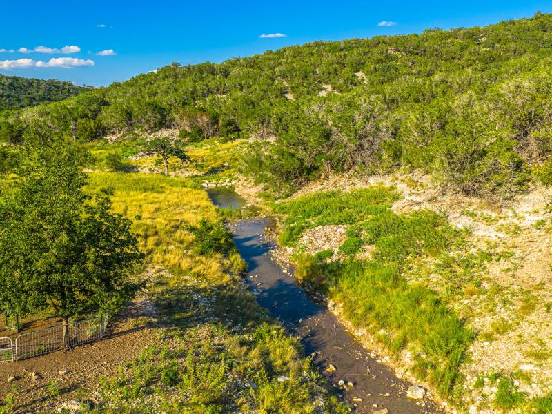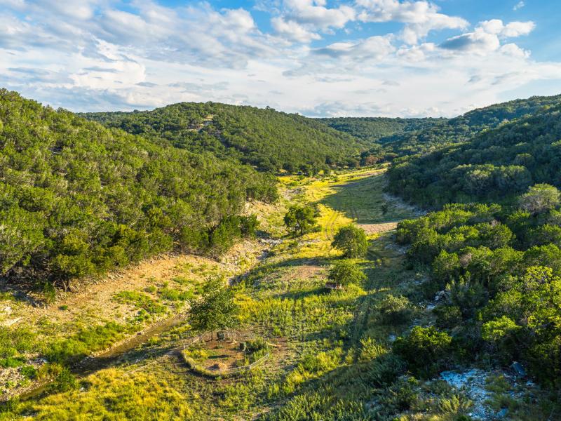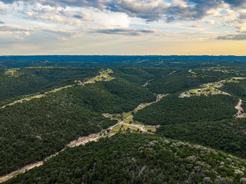 The natural beauty of Bugle Spring Ranch is defined by its bold elevation changes, ranging from 1,950 to 2,350 feet above sea level. Panoramic views stretch across rolling pastures, sheltered canyons, and dramatic ridgelines, creating endless opportunities for scenic homesites. The ranch features the best of both worlds for the area, given expansive roads on top of the ridgelines and four valleys down into the bottom of the ranch, boasting overall accessibility with miles of roads. Mature oak and juniper woodlands provide both shade and cover, while open meadows highlight the ranchs versatility. The mix of rugged terrain and usable ground makes the property equally suited for building, recreation, and habitat preservation. Dating back to its Native American inhabitants, the ranch is home to multiple midden mounds surrounding the spring currently on the ranch. Bugle Spring also contains the headwaters of Short Kent Creek for 4,170 linear feet, enhancing the ranchs ability to create exceptional future water features.