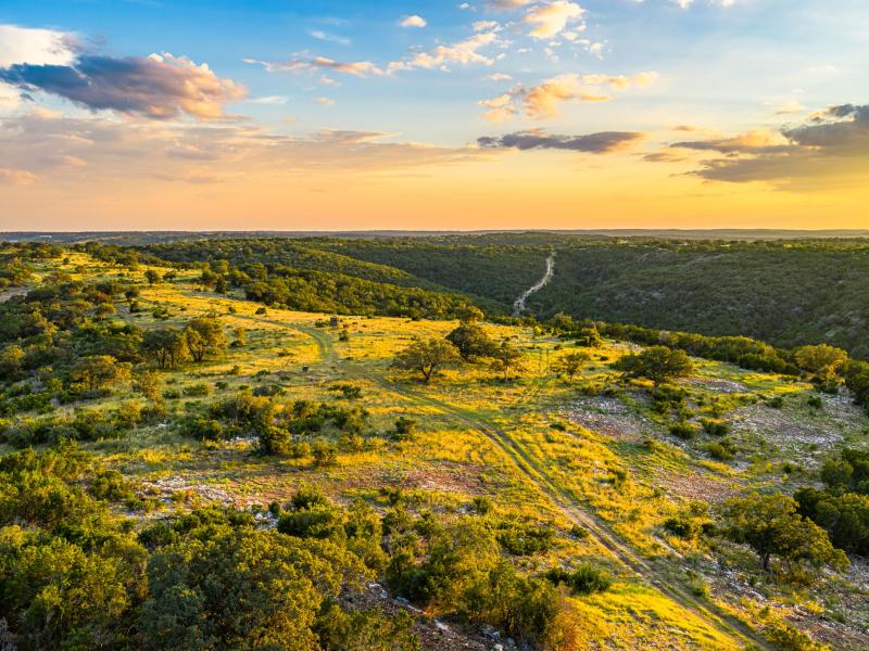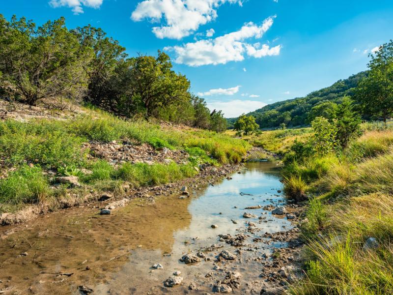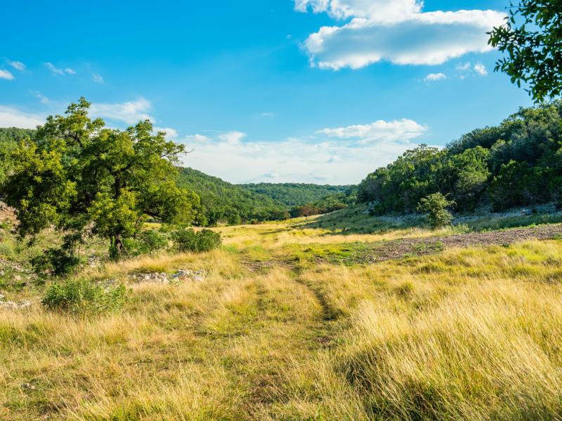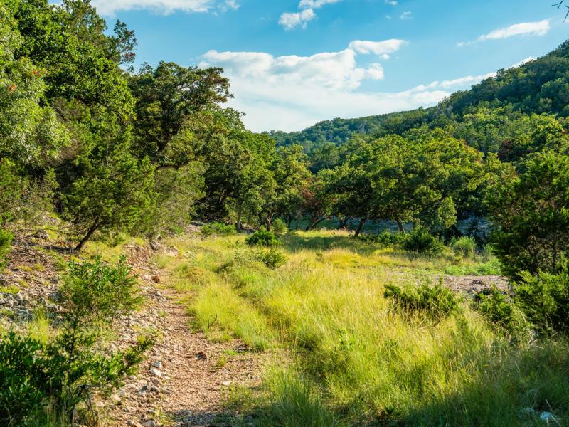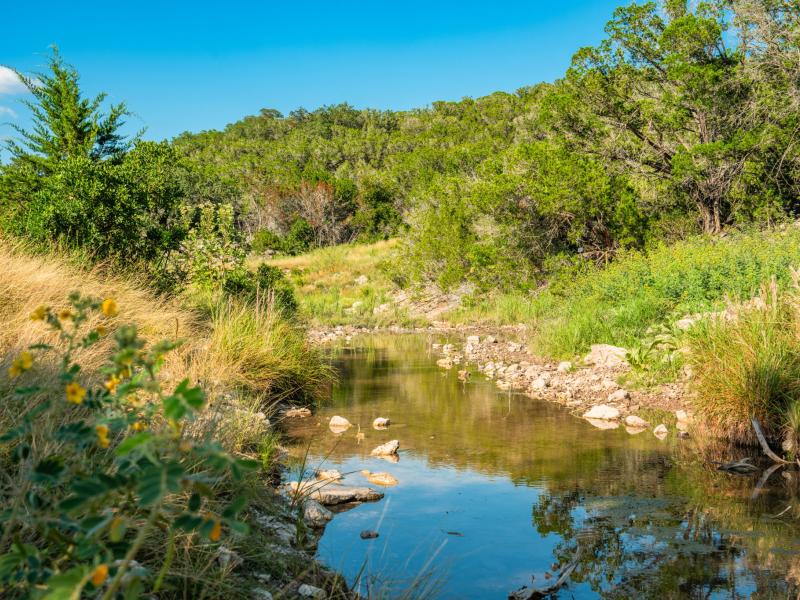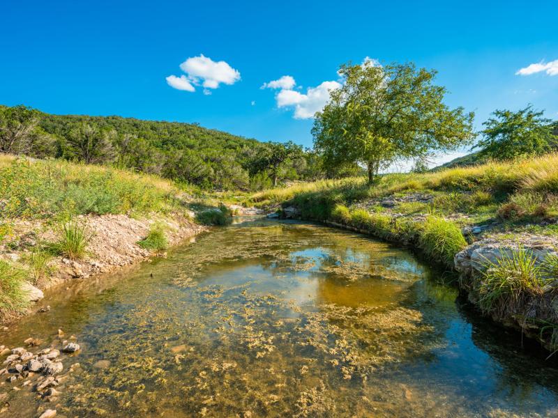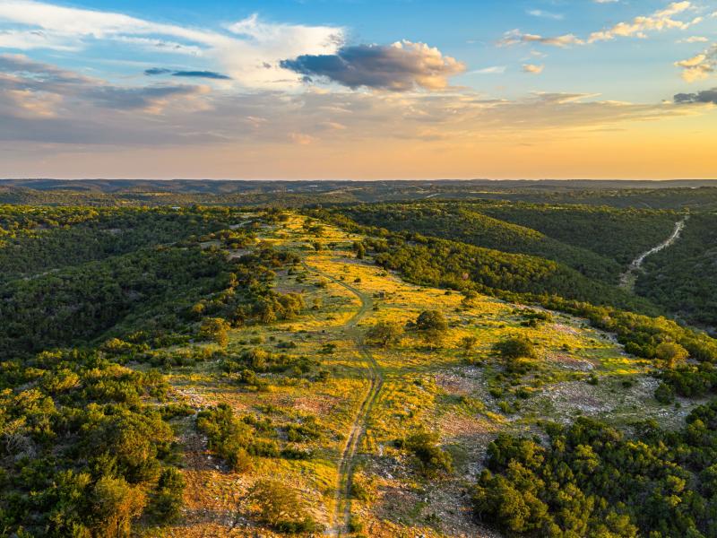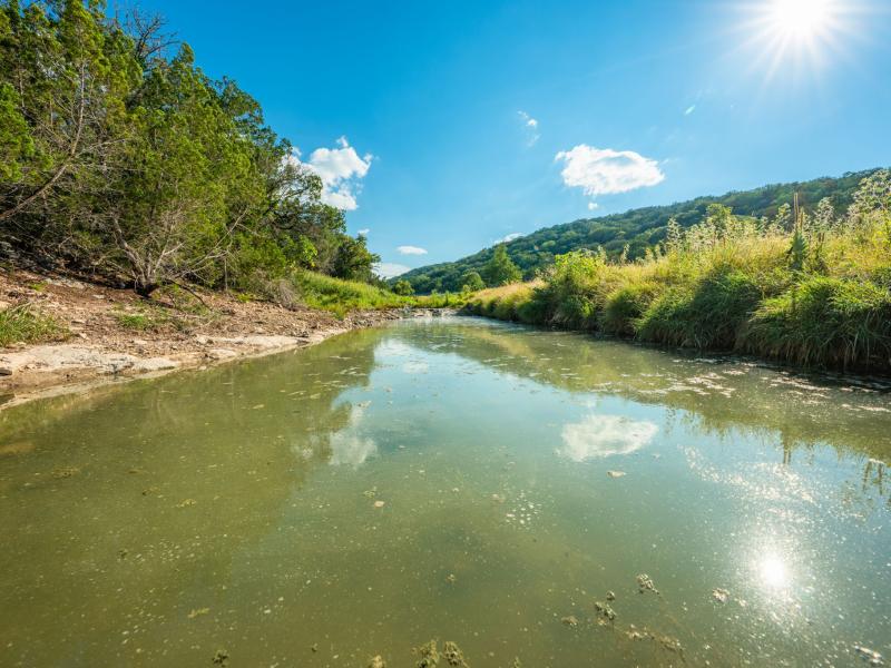 The natural beauty of Bugle Spring Ranch is defined by its bold elevation changes, ranging from 1,950 to 2,350 feet above sea level. Panoramic views stretch across rolling pastures, sheltered canyons, and dramatic ridgelines, creating endless opportunities for scenic homesites. The ranch features the best of both worlds for the area, given expansive roads on top of the ridgelines and four valleys down into the bottom of the ranch, boasting overall accessibility with miles of roads. Mature oak and juniper woodlands provide both shade and cover, while open meadows highlight the ranchs versatility. The mix of rugged terrain and usable ground makes the property equally suited for building, recreation, and habitat preservation. Dating back to its Native American inhabitants, the ranch is home to multiple midden mounds surrounding the spring currently on the ranch. Bugle Spring also contains the headwaters of Short Kent Creek for 4,170 linear feet, enhancing the ranchs ability to create exceptional future water features.