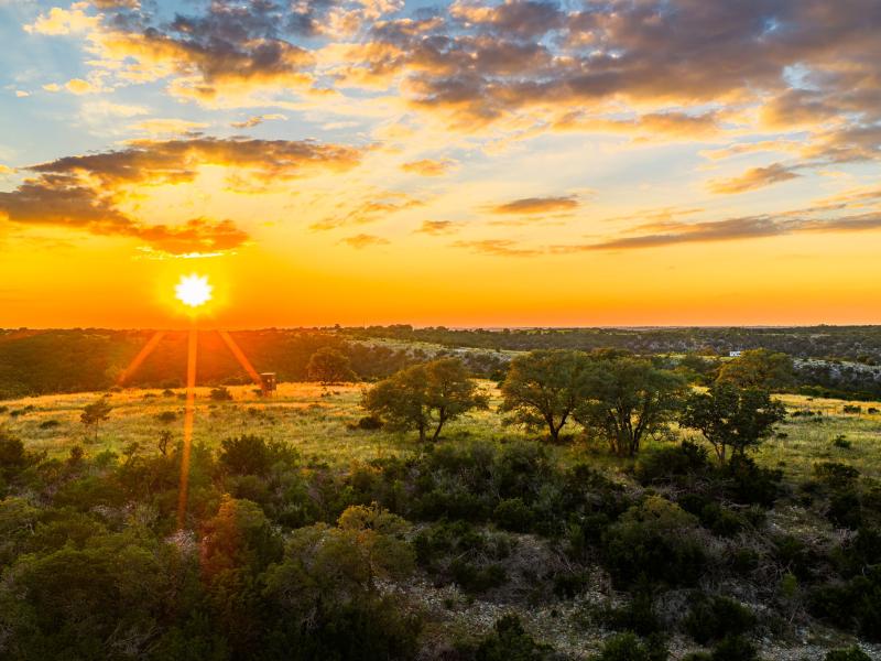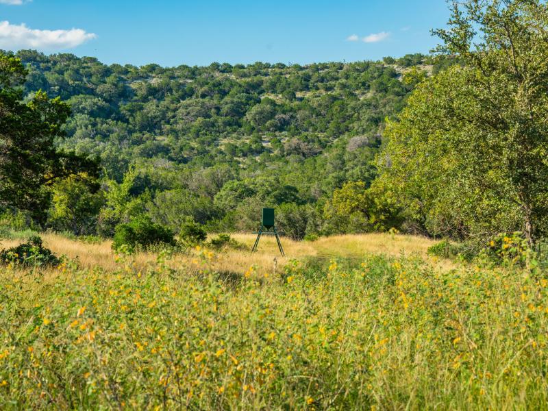 Bugle Spring Ranch is a haven for native and exotic wildlife, offering a hunting experience that rivals the best in the West. Whitetail deer, axis, aoudad, turkey, bobwhite quail, hogs, and other Hill Country game thrive across the ranch’s diverse terrain. Adding to the appeal, free-ranging elk and red stag roam the property—where hunters can call and bugle for elk just as if they were in the mountains of Colorado or Utah. With rolling pastures, dense brush, and sheltered draws creating ideal habitat, the ranch is both a sportsman’s paradise and a conservation-focused investment.