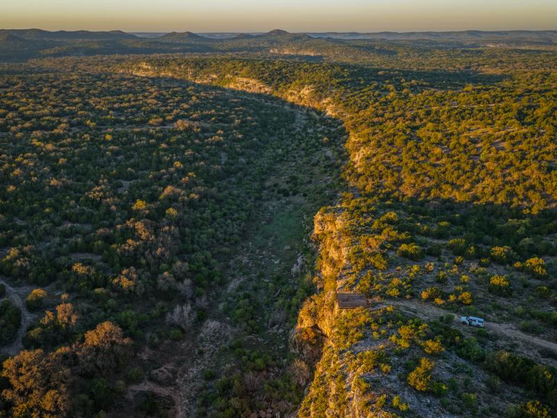 Vegetation is equally impressive. Strong stands of live oak, blue oak, shin oak, cedar elm, sycamore, walnut, and Texas persimmon are spread throughout the ranch, creating both visual appeal and exceptional wildlife habitat. Selective cedar clearing has enhanced native grasses and browse, resulting in a healthy, balanced ecosystem.