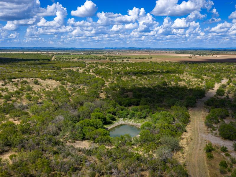 The ranch is well watered with two ponds situated along a tributary of Nolton Creek that provide consistent water for wildlife. Two wells service the property: a shallow well producing two to three gallons per minute at a depth of one hundred feet, and a newly drilled Edwards Aquifer irrigation well at a depth of 1,010 feet that produces 17.37 GPM but has the capabilities, with the right permits, to produce an impressive 400 gallons per minute, with a static water level of 270 feet and the pump set at 378 feet. While the property has no structural improvements, it offers numerous excellent building locations for a future lodge or homestead. Several cross-fences divide the cultivated fields from the brushland, and the perimeter is primarily low fenced with one side high fenced, offering flexibility for both game management and agricultural uses.