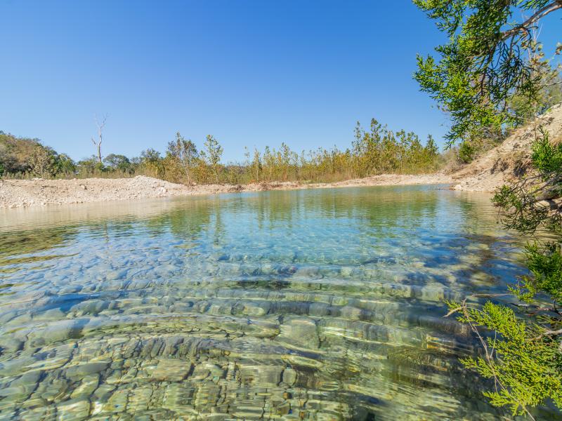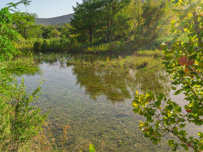 The centerpiece of the property is its incredible stretch of the West Frio River. With more than 1,000 feet of both banks under ownership, the river here is spring-fed and crystal clear—often described as the Caribbean of the Hill Country. The riverbed features smooth limestone, deep emerald pools, and gently flowing rapids. The water remains clear year-round, making it ideal for swimming, fly fishing, floating, and relaxing under the shade of mature Pecan trees. A naturally formed gravel beach area creates the perfect spot for outdoor entertaining, cookouts, or quiet reflection. In addition to the river, multiple seep springs run throughout the property, adding to the overall water supply and enhancing the natural environment. Importantly, this stretch of river has shown resilience during recent flood events, with no reported damage to its banks or surrounding infrastructure. With two water wells, over 1,000 feet of West Frio River frontage, and multiple spring-fed seeps, the 70-acre Blue Frio River Ranch stands as one of the most abundantly watered properties of its size in the entire Texas Hill Country.
