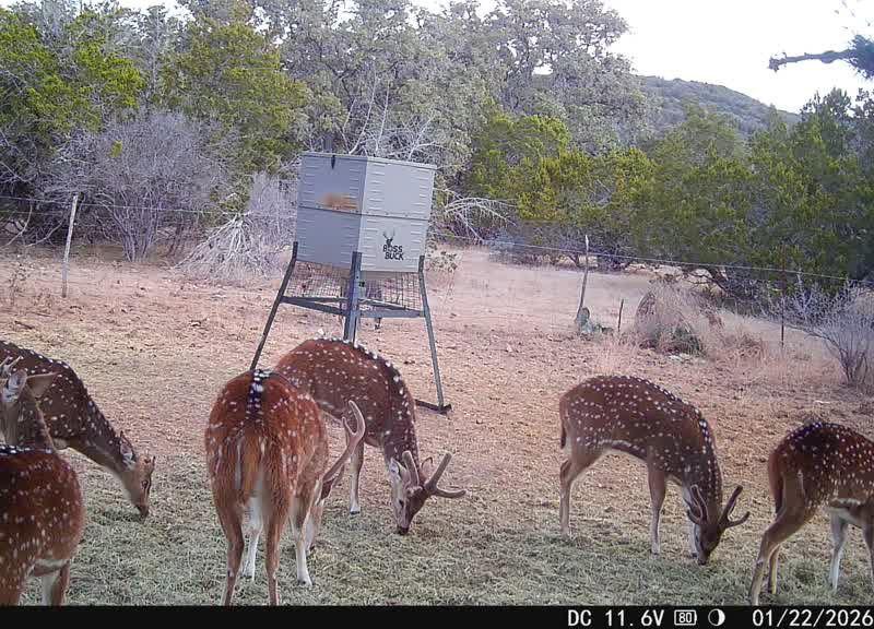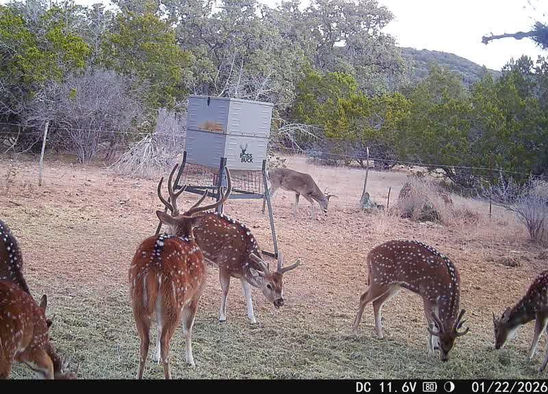 Blue Frio River Ranch supports a thriving mix of native and exotic wildlife. The combination of river access, water troughs, native grasses, and wooded cover provides excellent year-round habitat. Wildlife frequently observed on the property includes whitetail deer, axis deer, fallow, blackbuck antelope, Aoudad sheep, wild hogs, turkey, and dove. The ranch’s low-fence perimeter allows for natural animal movement while still supporting hunting, photography, and wildlife observation. The balance of open field, brush, and water sources makes this an ideal property for those seeking a well-managed wildlife experience. Multiple blinds and feeders allow for immediate access to free chase hill country wildlife. The ranch is currently under a wildlife management tax exemption, offering substantial property tax savings to the owner. This exemption not only reduces holding costs, but also promotes the ongoing care and enhancement of native habitat and wildlife resources across the property. It’s a tax strategy that supports stewardship, conservation, and long-term land value.