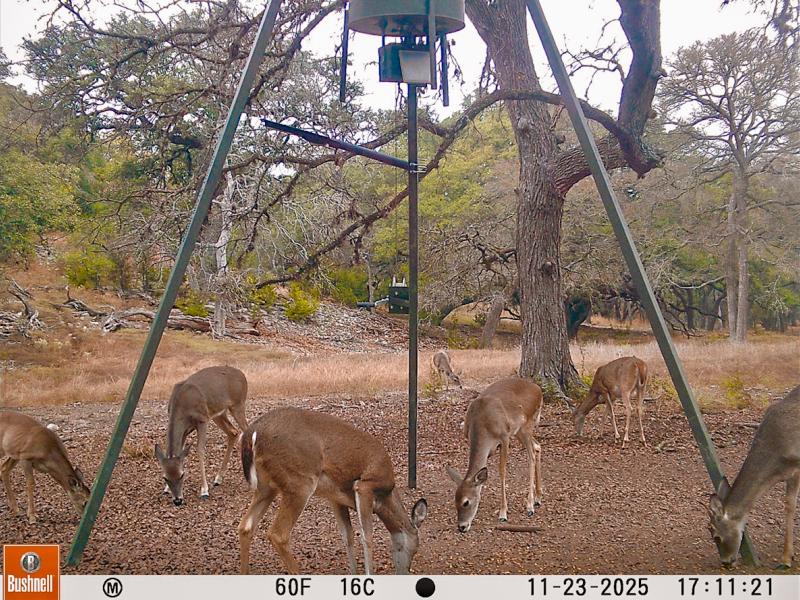 The contrast between the shaded elm bottoms and elevated ridges creates constant movement—axis slipping through the trees, whitetail crossing the draws, and game filtering naturally throughout the ranch. Whether hunting, wildlife watching, or simply enjoying the land, Boerne Elm Ranch delivers an active, authentic Hill Country wildlife experience year-round.
